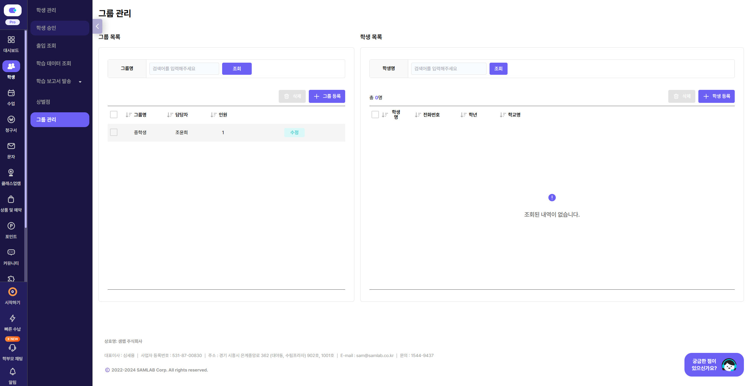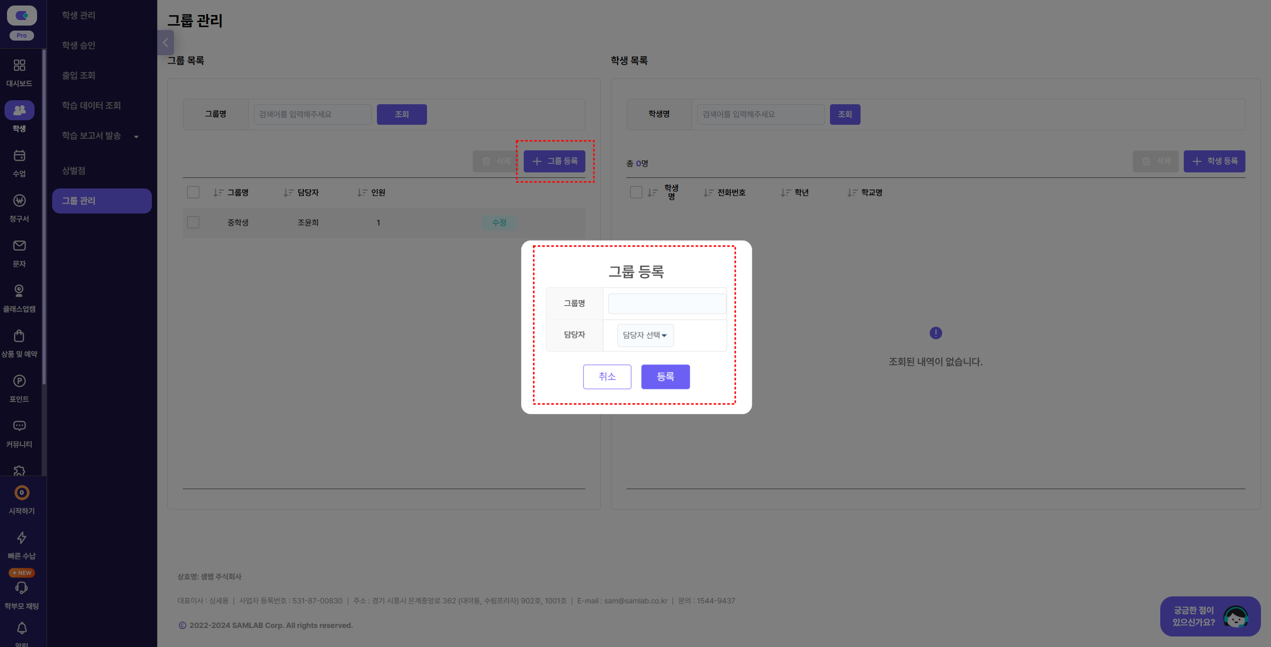 +๊ทธ๋ฃน ๋ฑ๋ก ๋ฒํผ โ ๊ทธ๋ฃน๋ช ๋ฐ ๋ด๋น์๋ฅผ ์ค์ ํฉ๋๋ค.