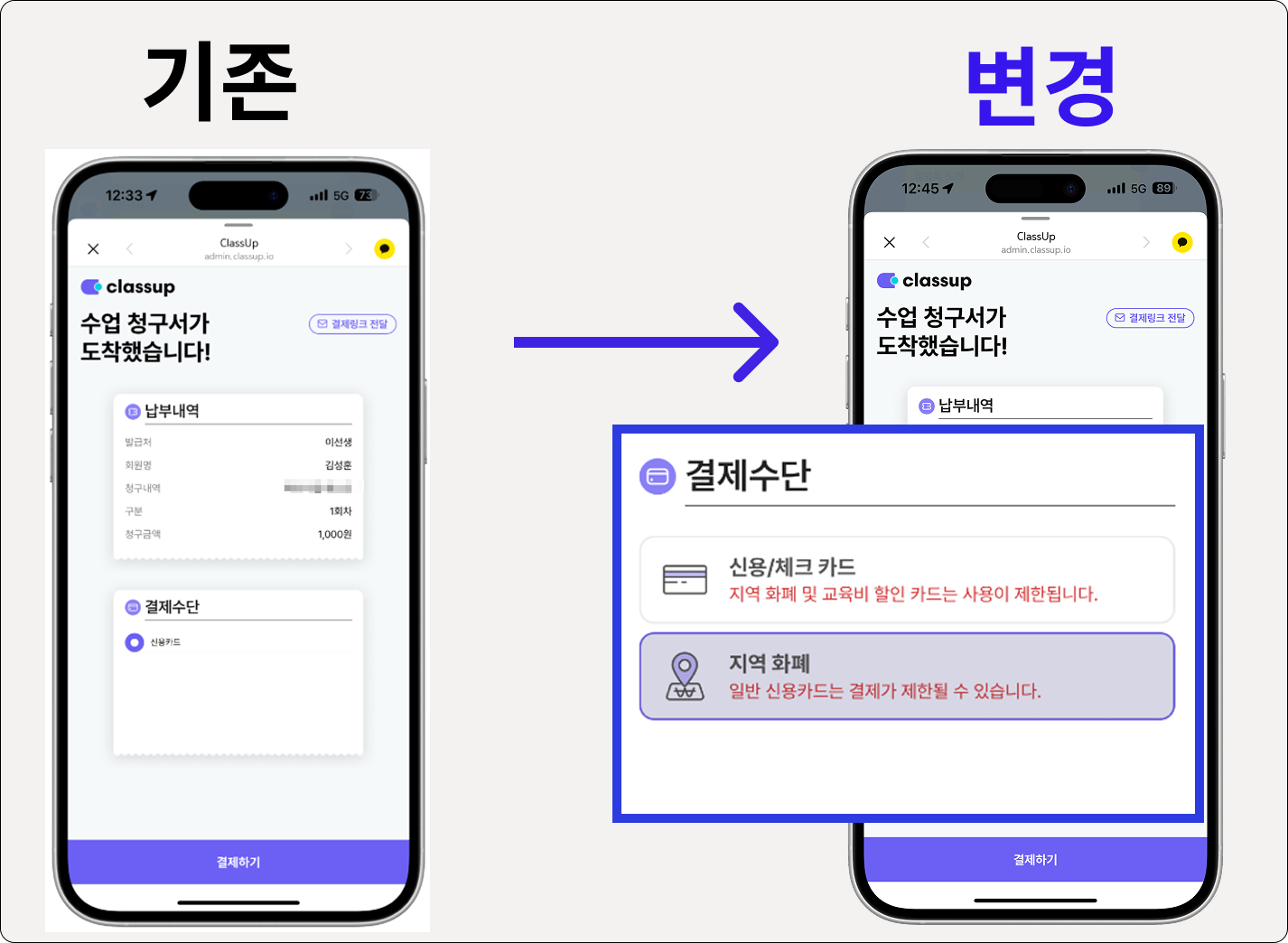 이제 학부모님들은 더 편리하게 결제하고, 운영자님들은 보다 다양한 결제 옵션을 제공할 수 있어요.