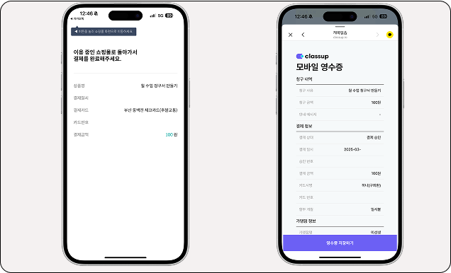 클래스업 결제페이지로 돌아가서 영수증 확인