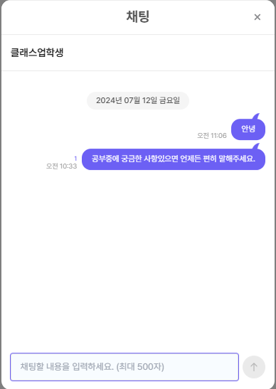 •학생과 1:1로 채팅을 할 수 있습니다.