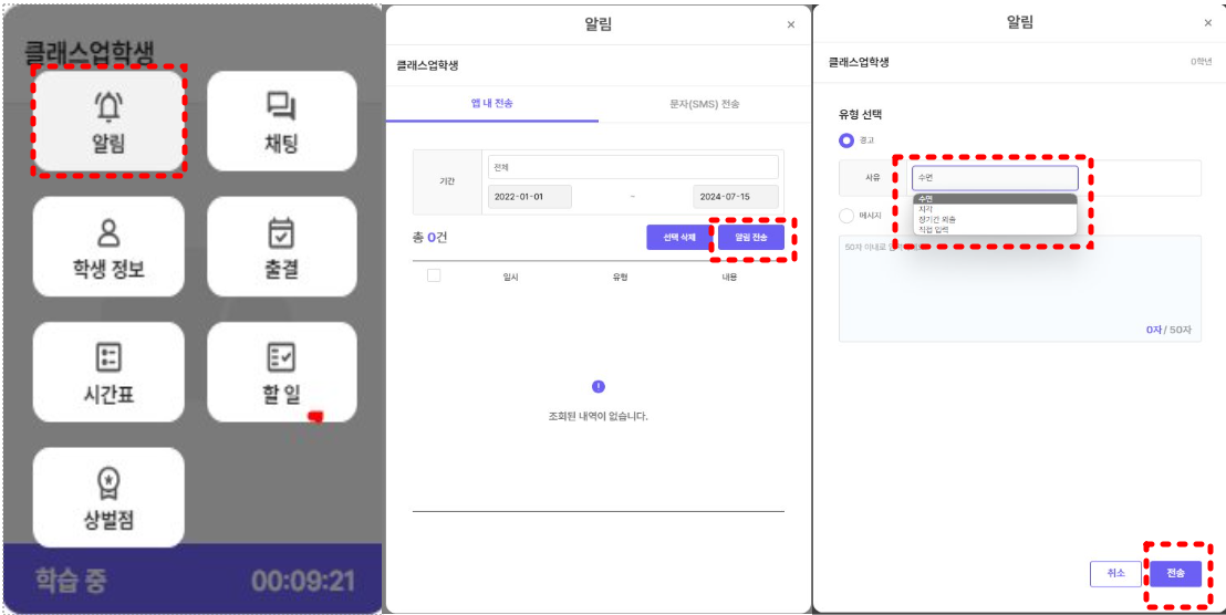 •학습 중인 학생에게 실시간으로 경고 알림을 보낼 수 있습니다.