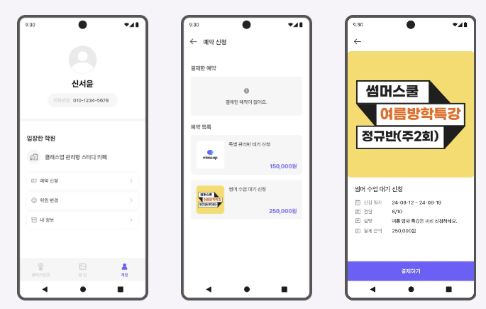 수업과 연결되어있지 않기 때문에 예약 신청으로 돈을 받은 후에 수업에 직접 학생을 넣어주셔야 해요!