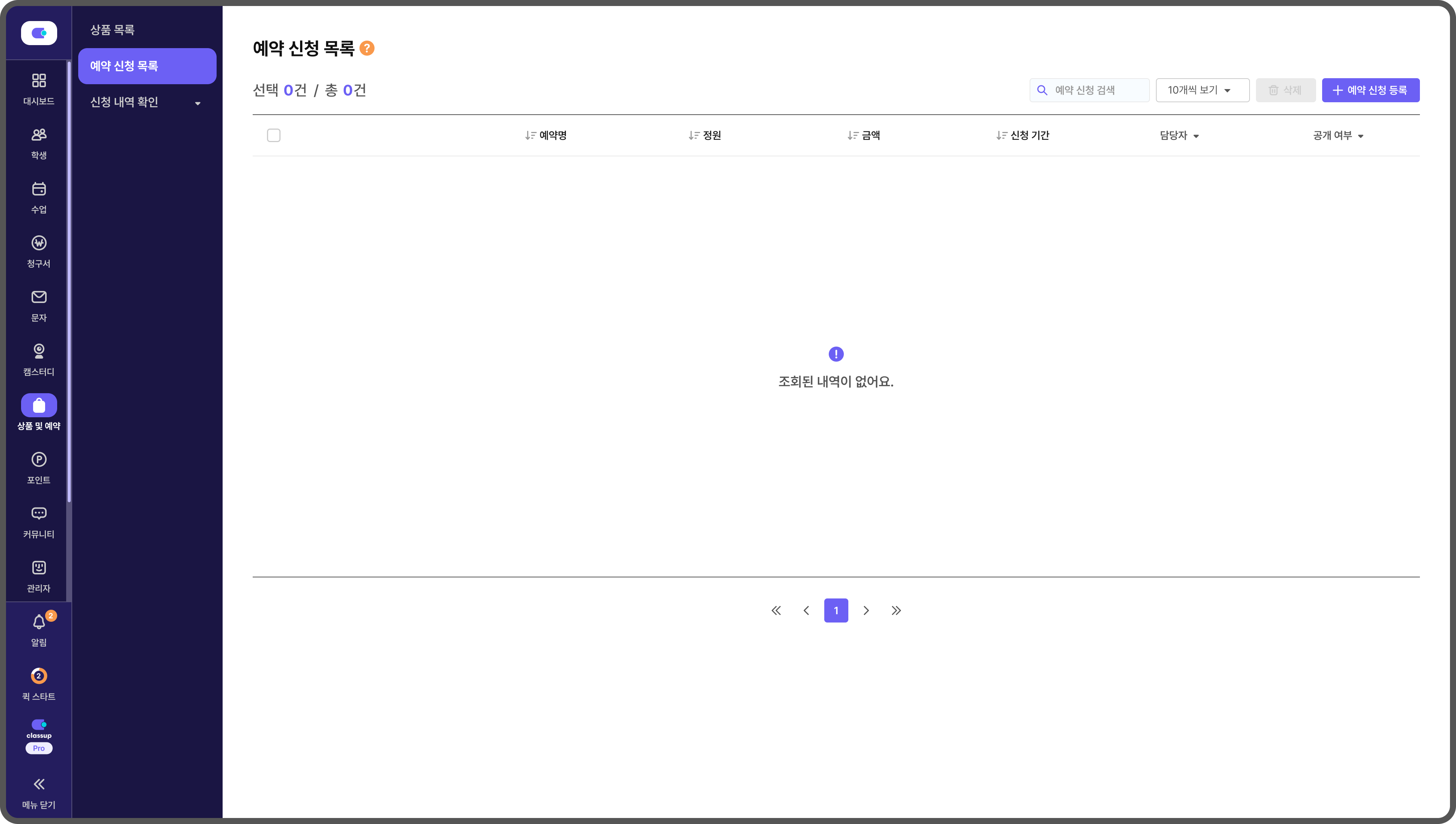 예약 신청 목록을 관리할 수 있는 메뉴가 새로 생겼습니다.