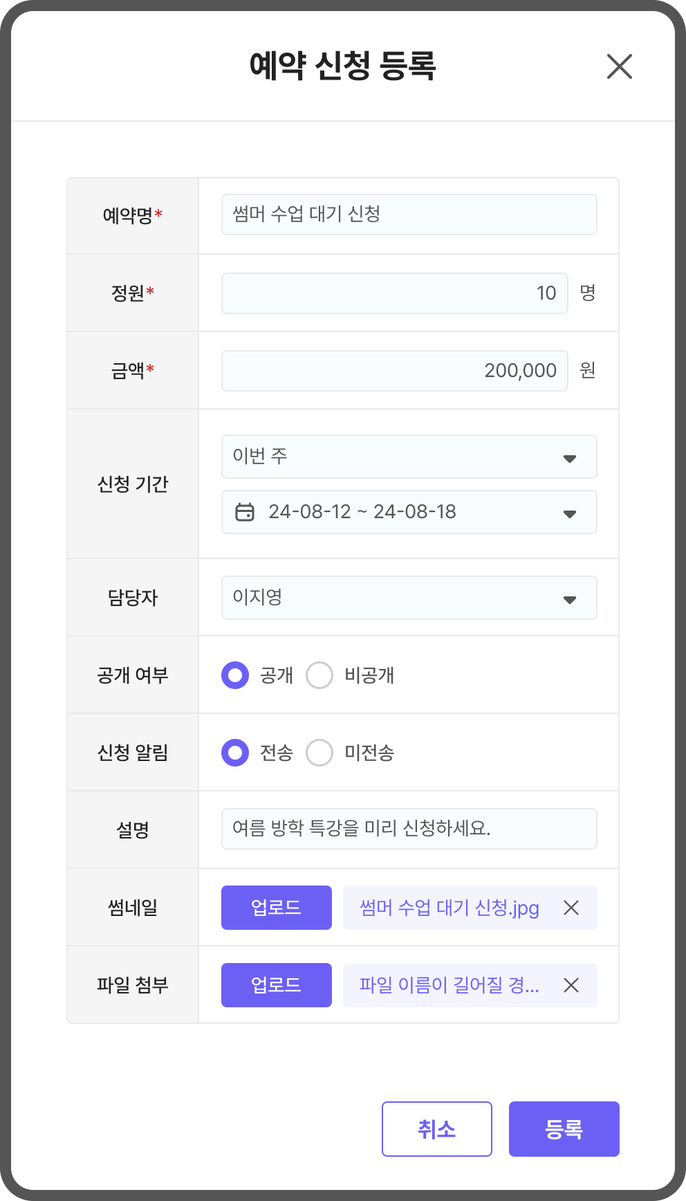 등록하면 수정과 신청 내역을 확인할 수 있어요!