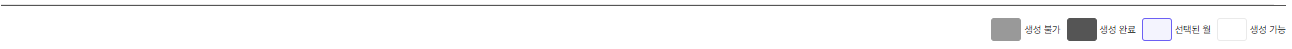 우측 하단에 박스 색깔 별로 내용을 확인하여 구분할 수 있습니다. (생성 불가 / 생성 완료 / 선택된 월 / 생성 가능)