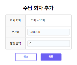 회차별로 수납을 추가할 수 있습니다.