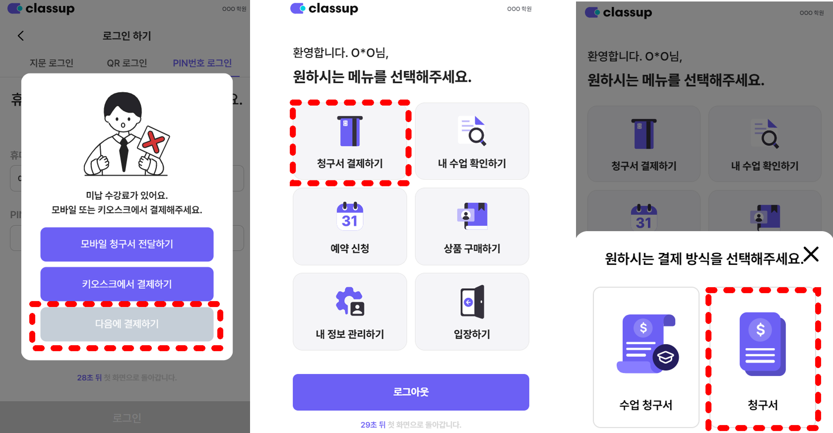 청구서 선택 시 일반 청구서도 키오스크 결제 가능합니다!