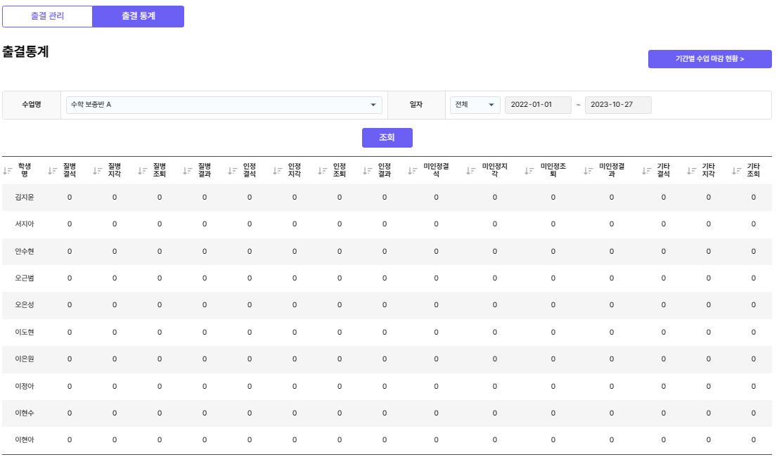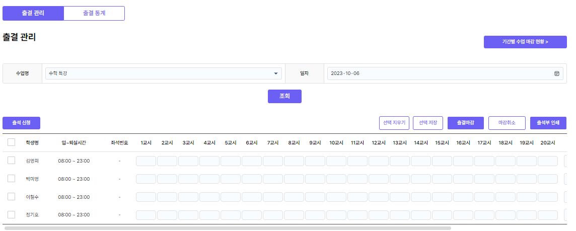[์์ ] > [์ถ๊ฒฐ๊ด๋ฆฌ] ์ ํตํด ํ์๋ค์ ์ถ์ ํํฉ์ ํ์ธํ ์ ์์ต๋๋ค.