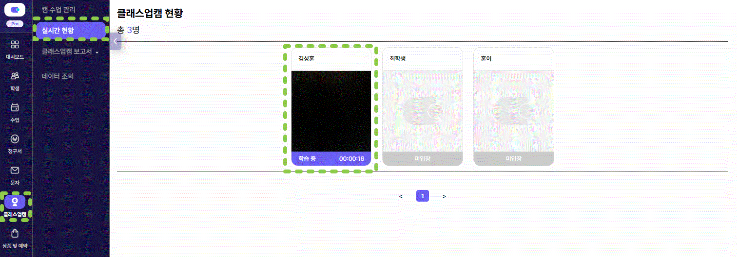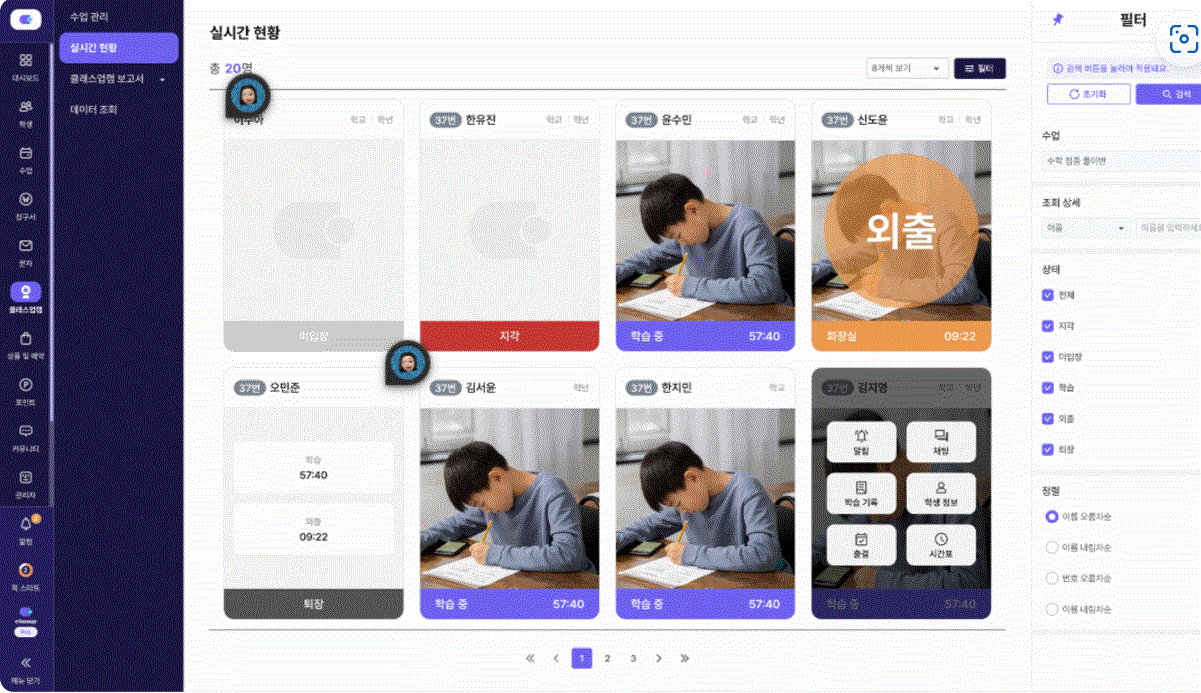 *최대 20명의 학생이 한 화면에 표시되며, 그 이상의 학생 수는 페이지 이동으로 확인 가능해요