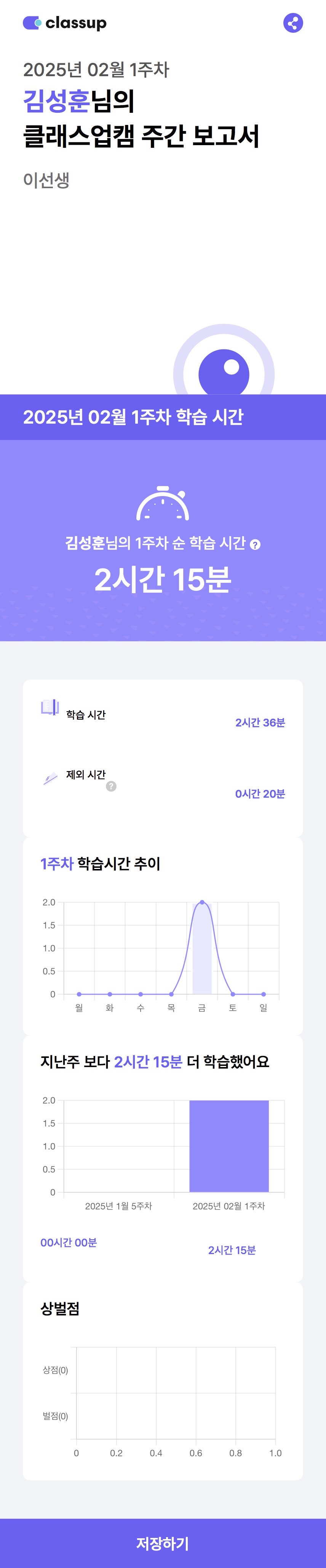 학생의 학습 상태를 체크할 수 있고 보호자에게 학습 보고서 발송 가능해요