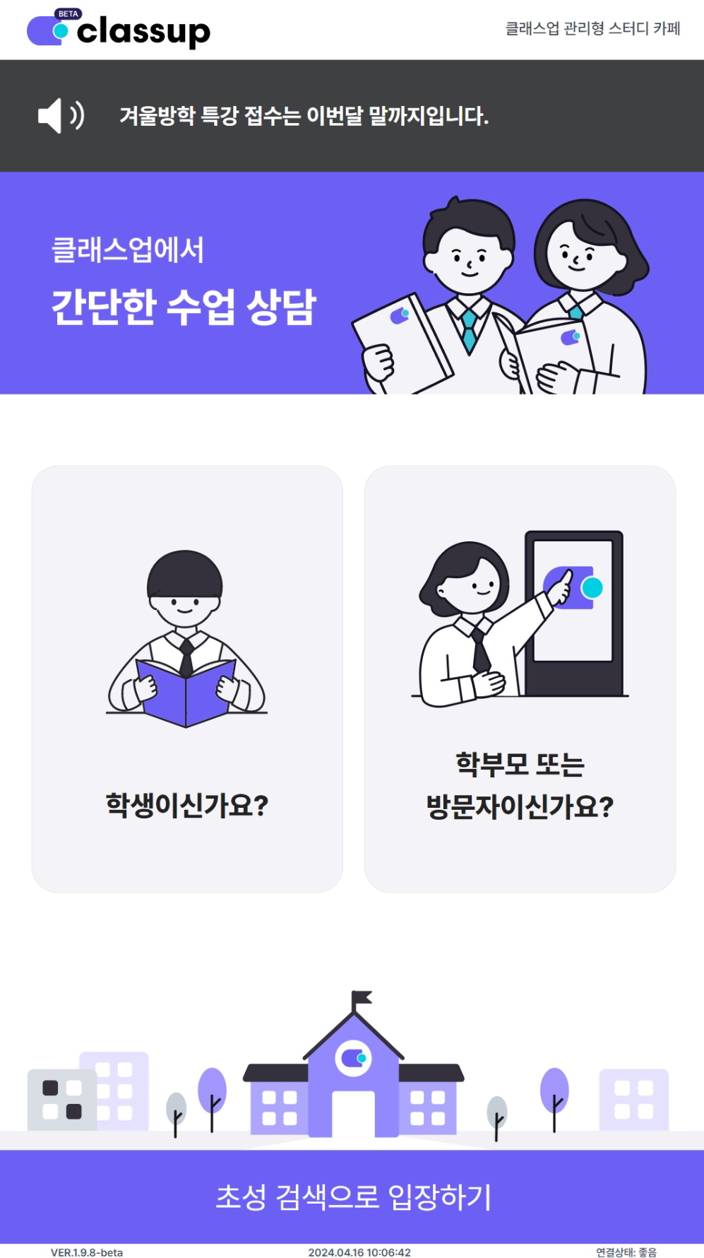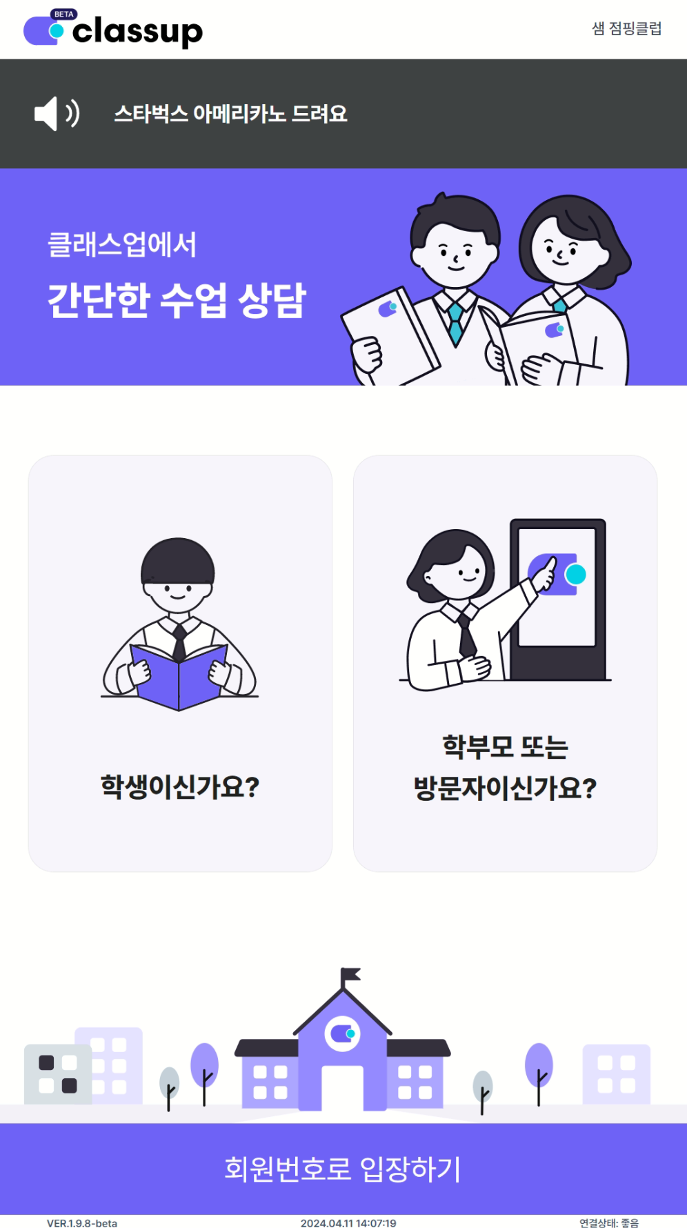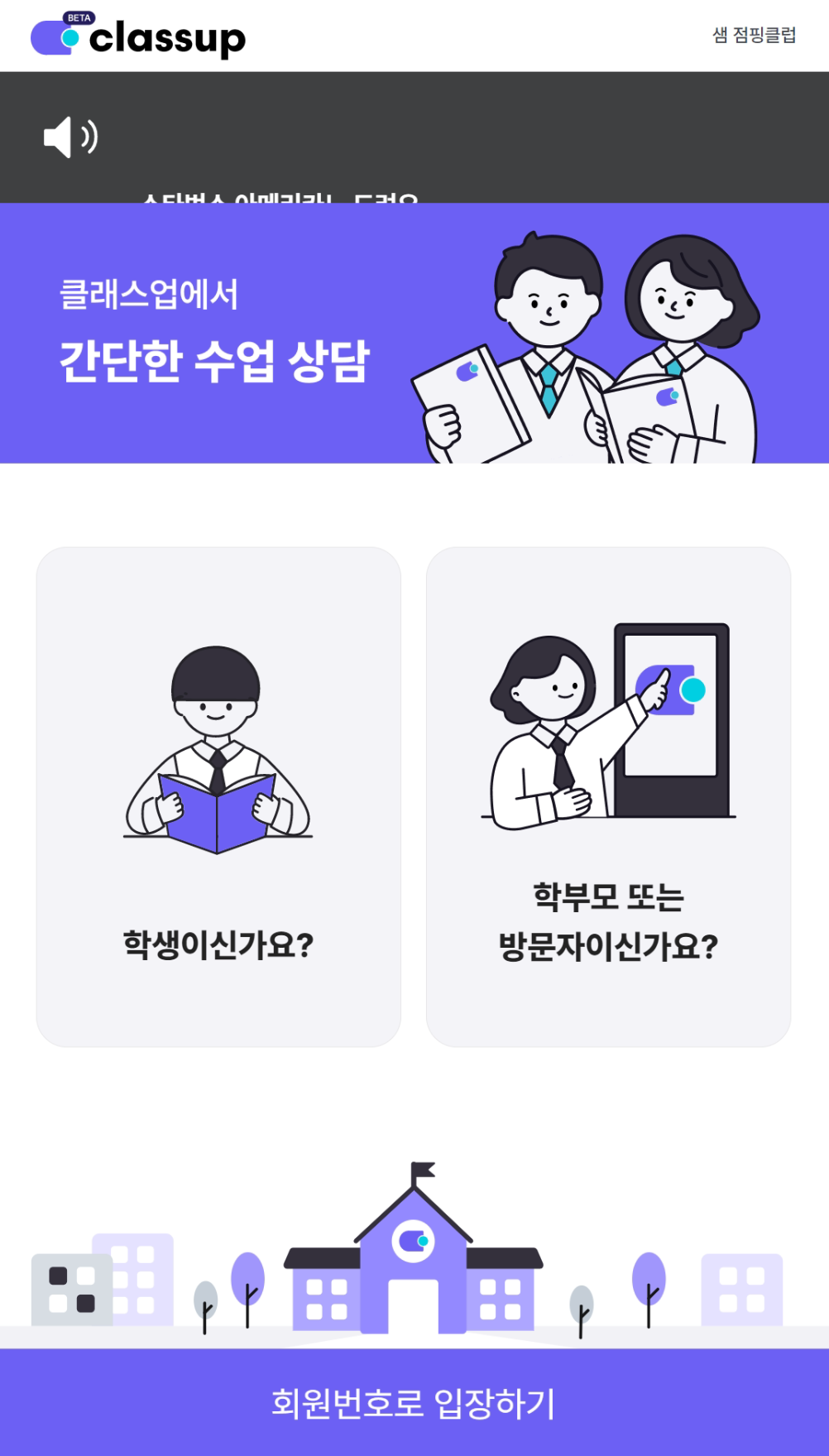 초기 화면에서 [학생이신가요?]를 누릅니다.