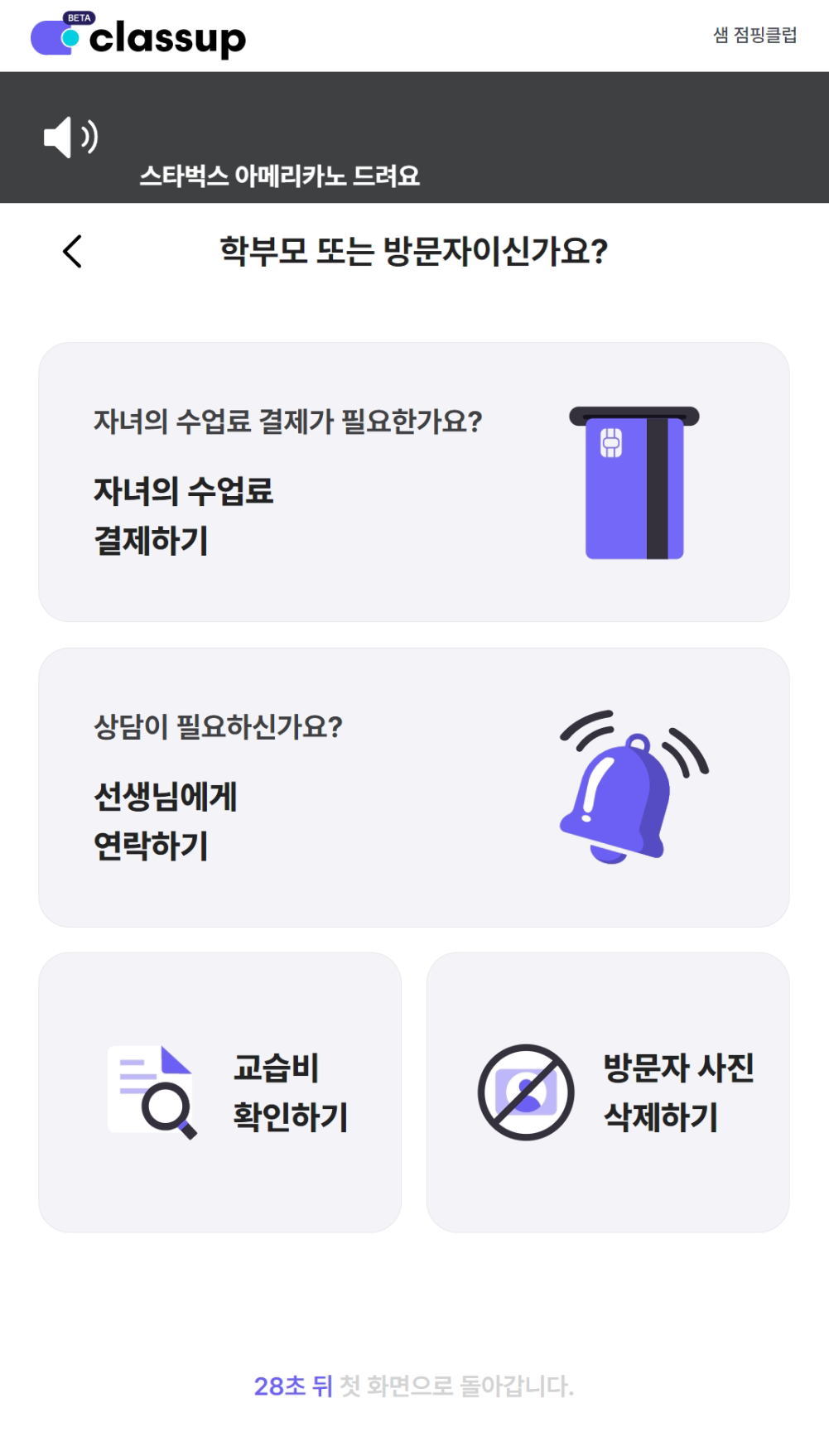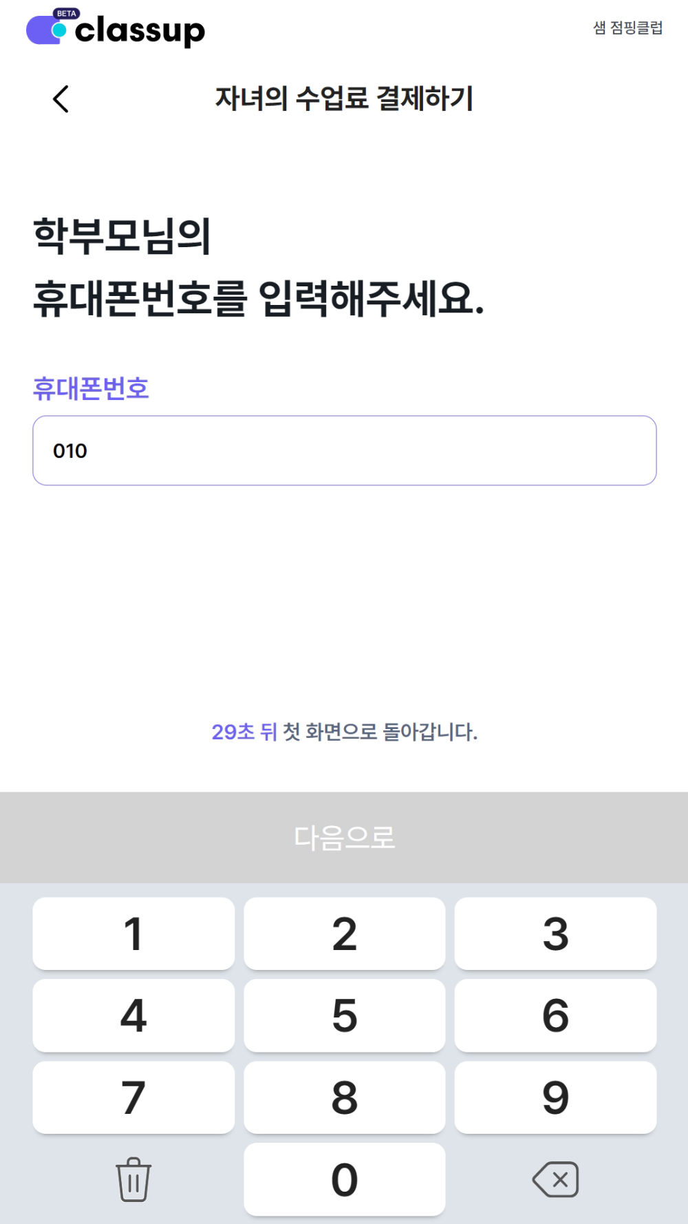 학부모님이 직접 자녀의 수업료를 결제할 수 있습니다.