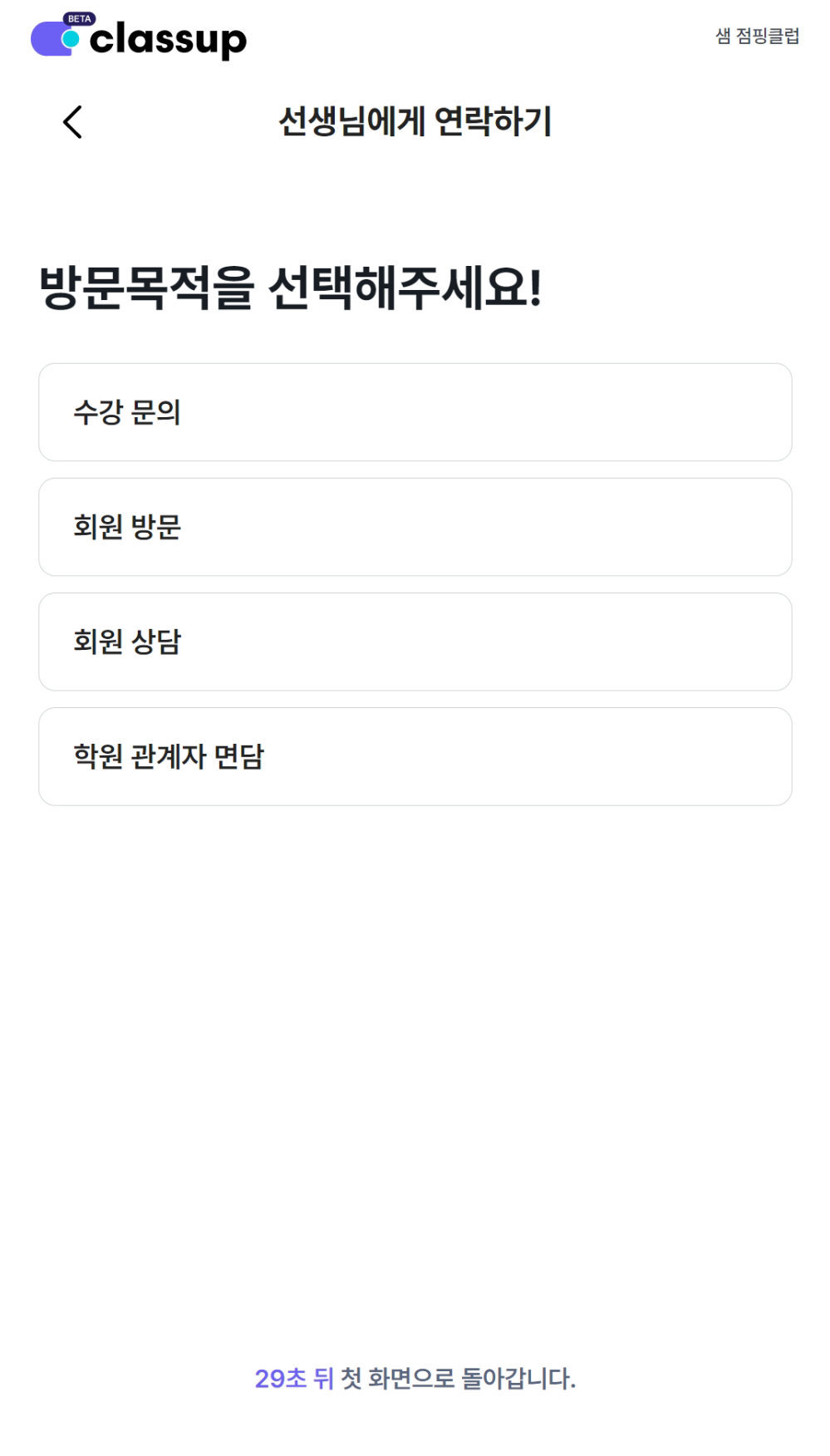 방문 목적을 위해 선생님에게 연락할 수 있습니다.