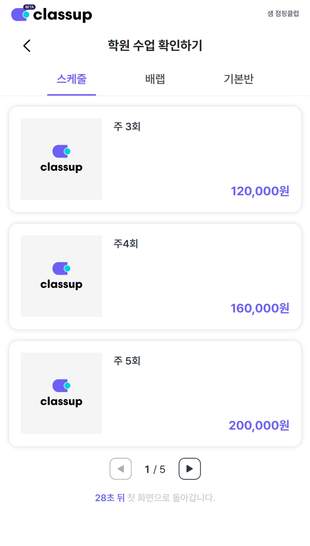 자녀의 학원 수업과 수업료를 확인할 수 있습니다.