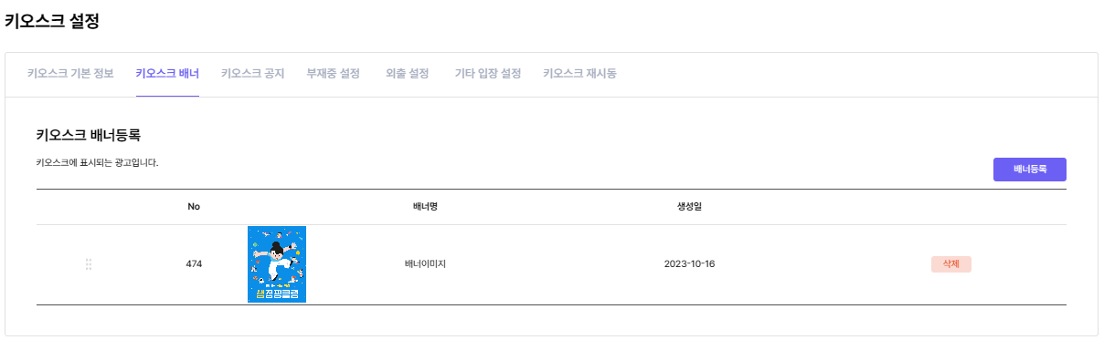 키오스크 화면에 나타나는 배너 이미지를 설정할 수 있습니다.