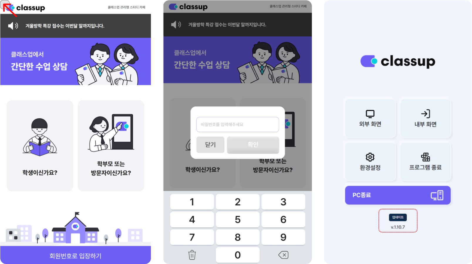 •학원 3층에서 사용중인 내부/외부 키오스크