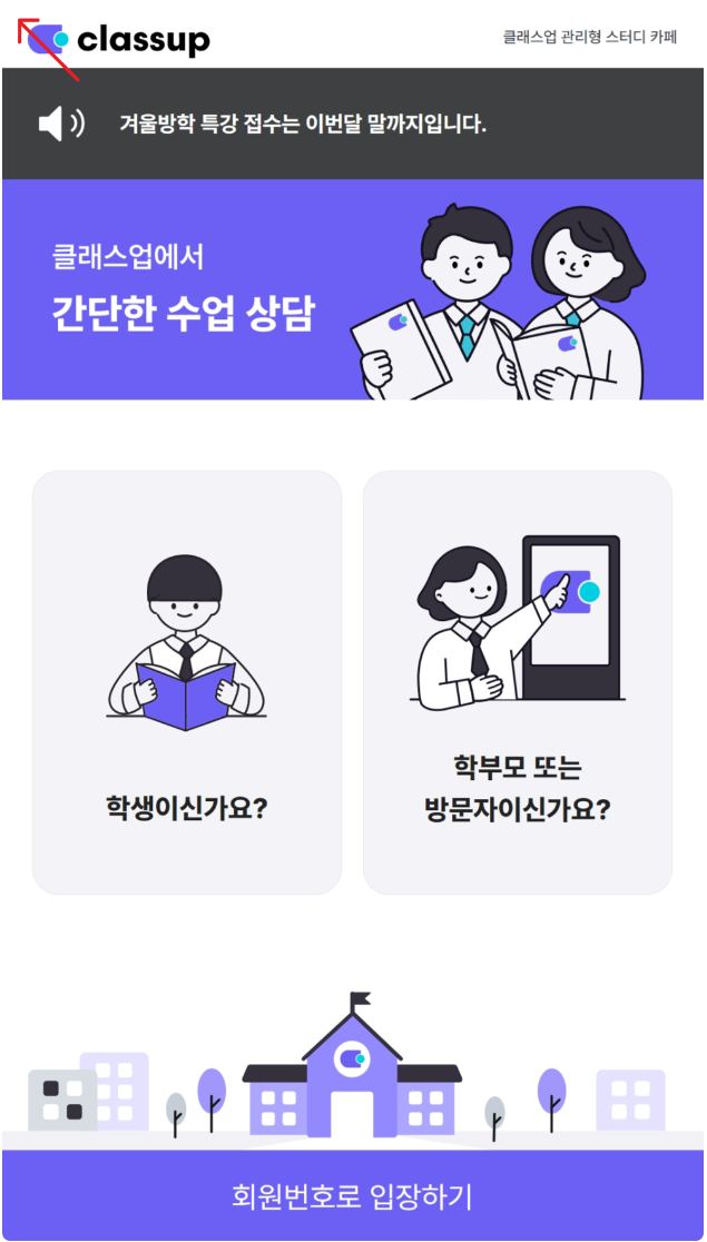클래스업 초기 화면의 좌측 상단의 흰색 공간을 6번 누릅니다.