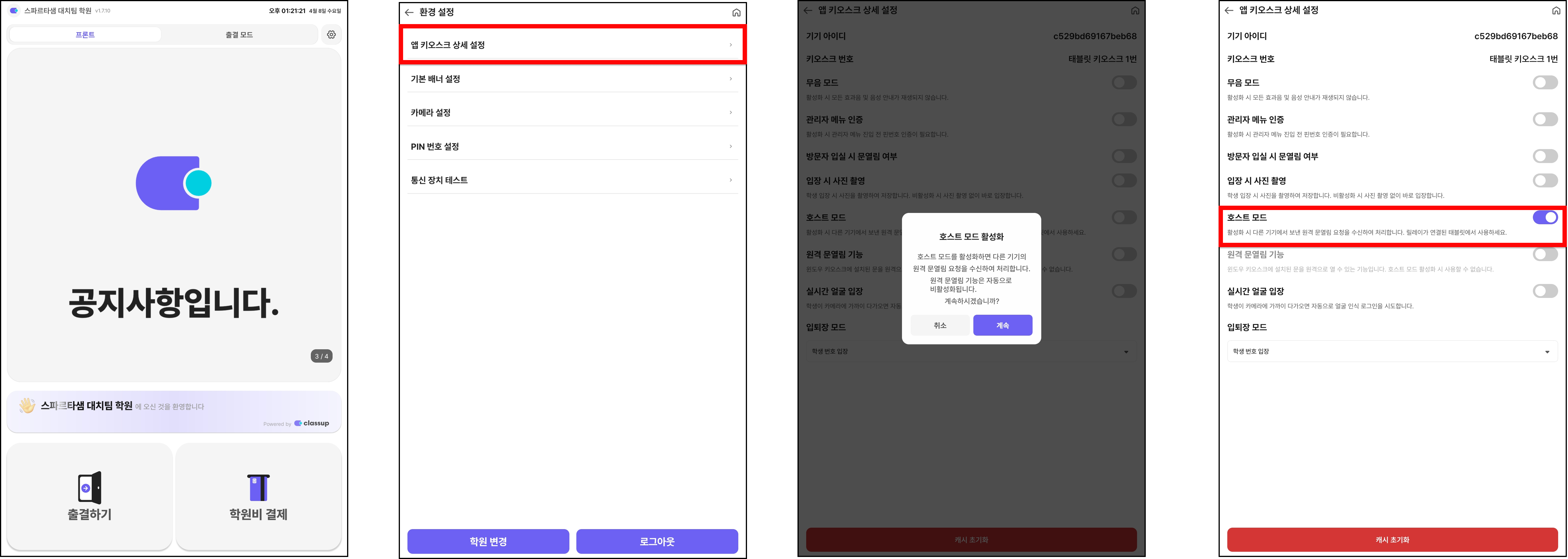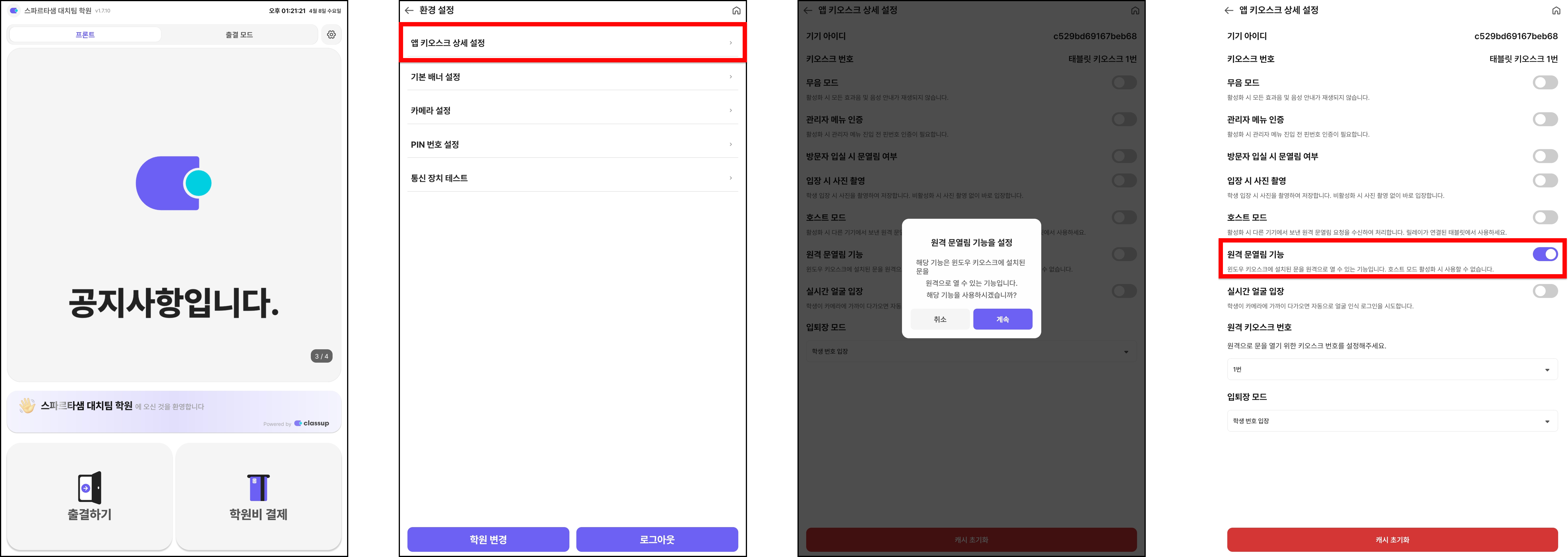 외부/내부 중 1개의 키오스크에서 출결을 해도 문이 안 열릴 때