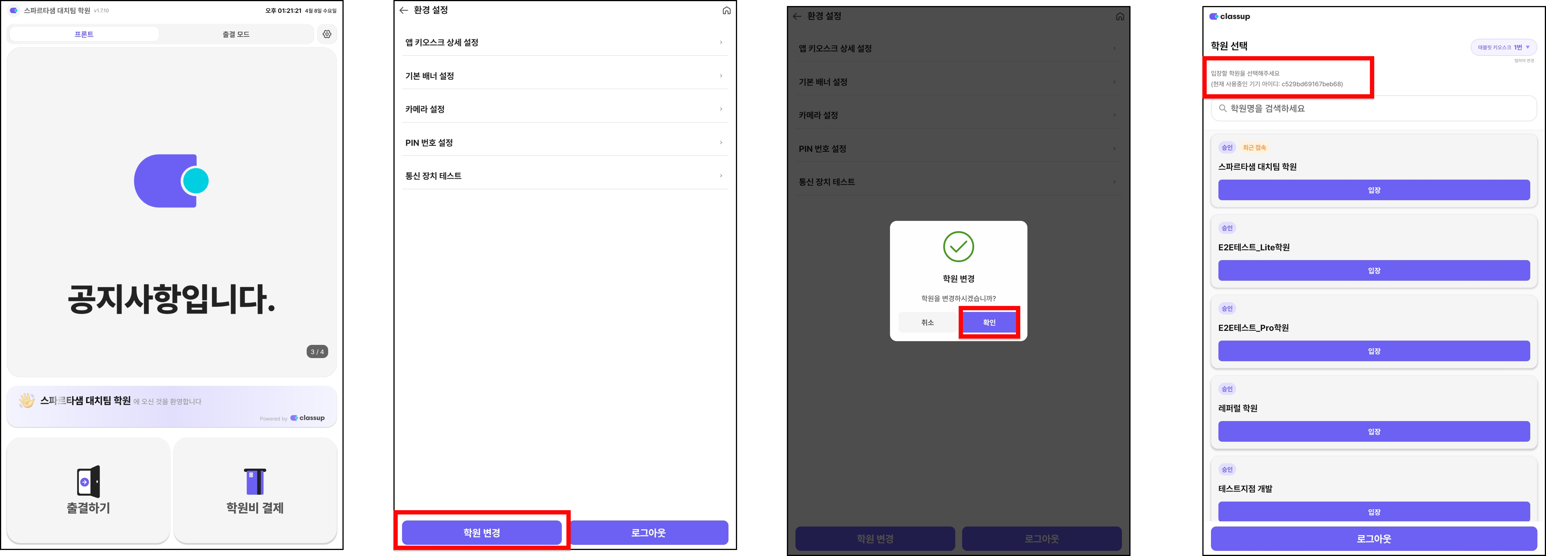 고객센터 요청: 클래스업 고객센터에 접속하여 "기존 기기 ID 를 전달하고 삭제"를 요청하세요.