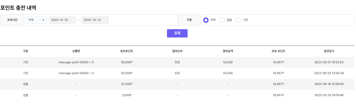 기관: 해당 기관에서 직접 충전하신 문자 포인트입니다.
