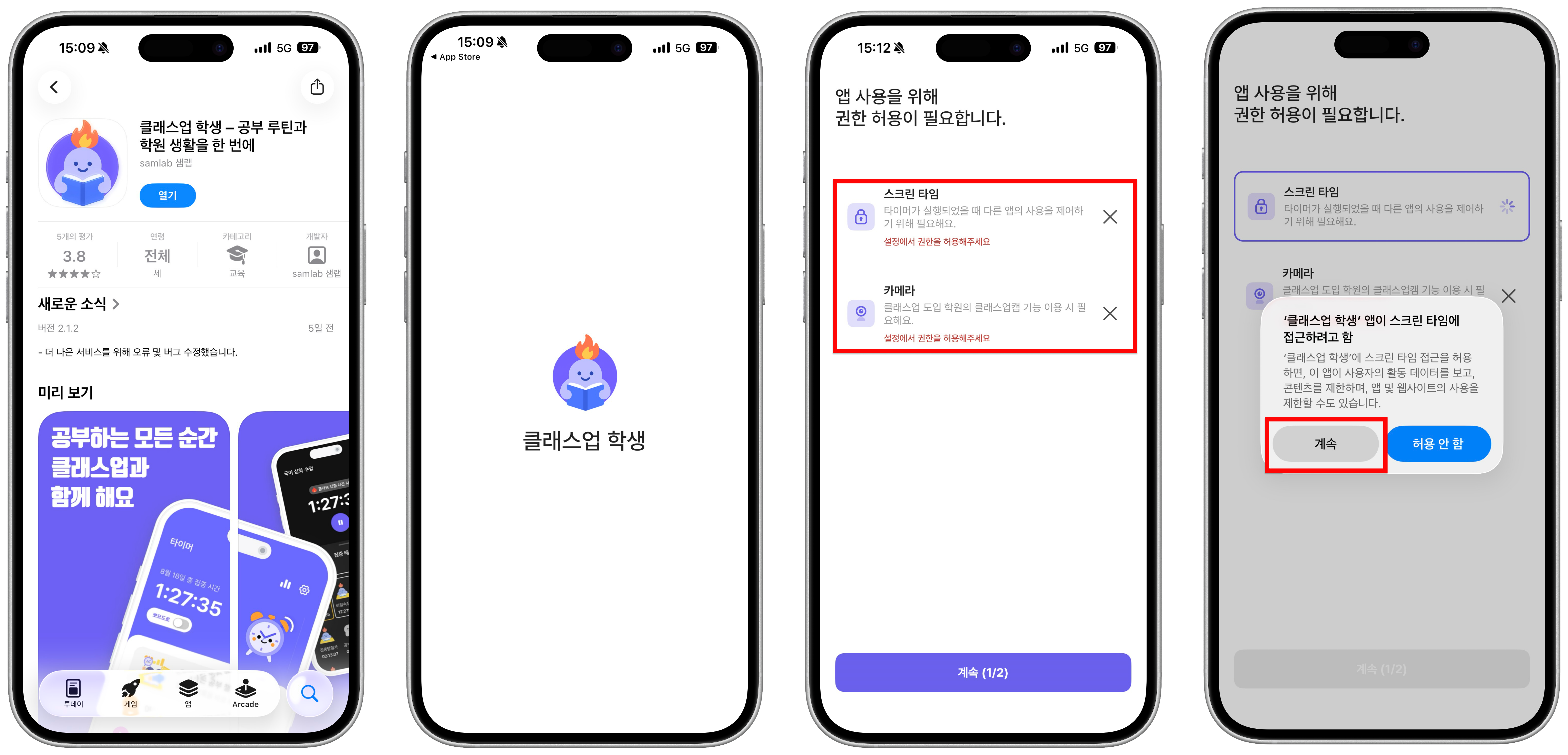 구글 플레이스토어(안드로이드)나 앱스토어(아이폰)에서 '클래스업 학생'을 검색해 주세요.