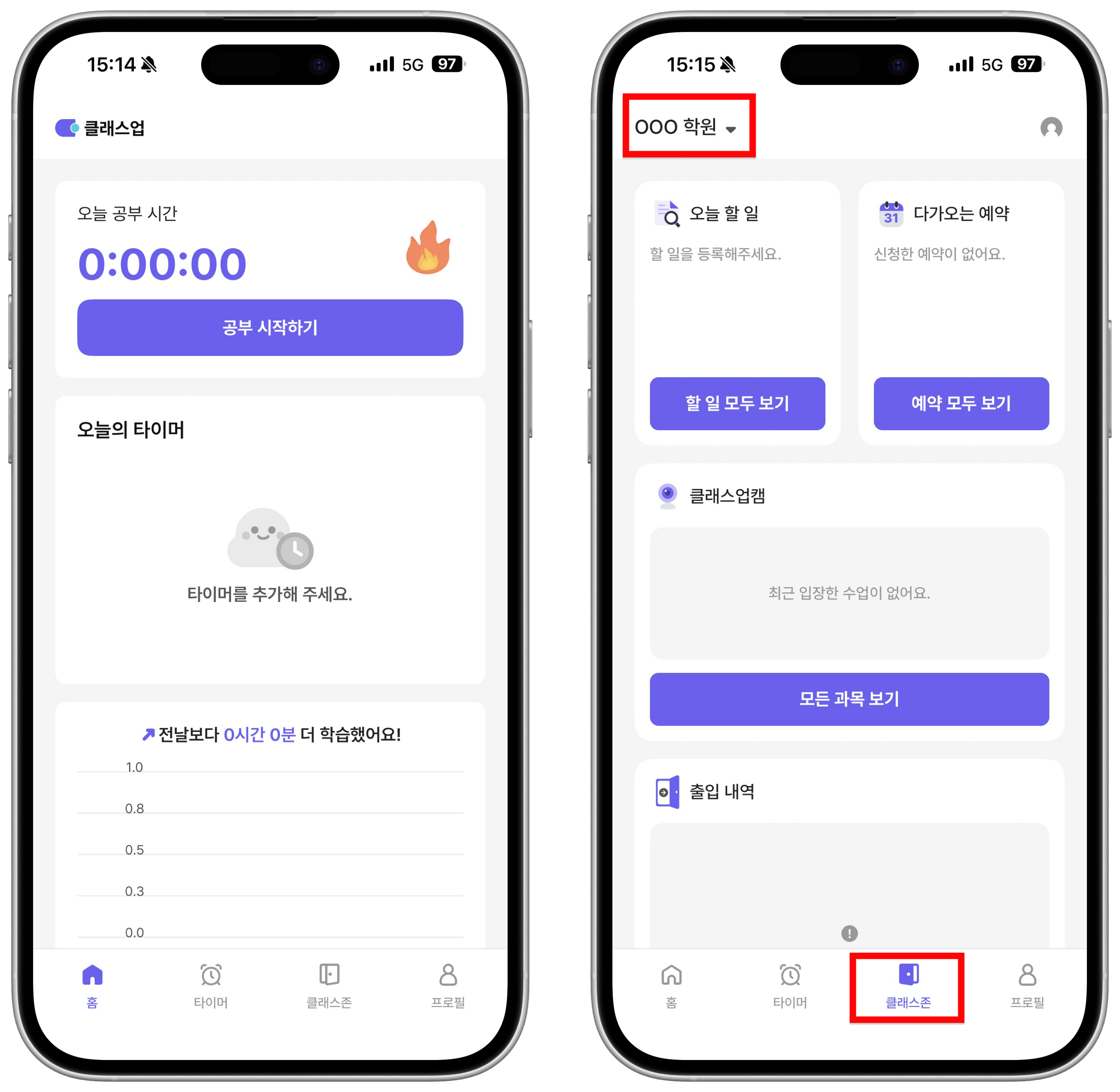 클래스업 학생 – 공부 루틴과 학원 생활을 한 번에