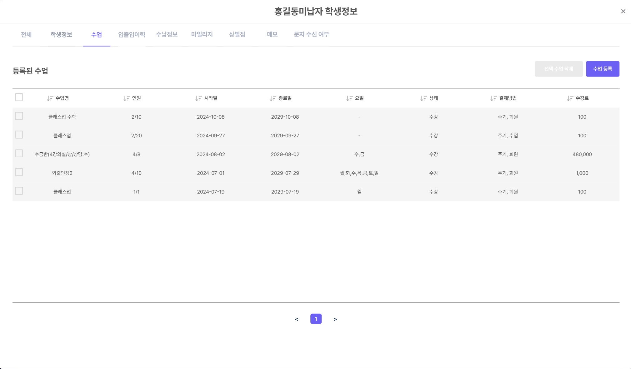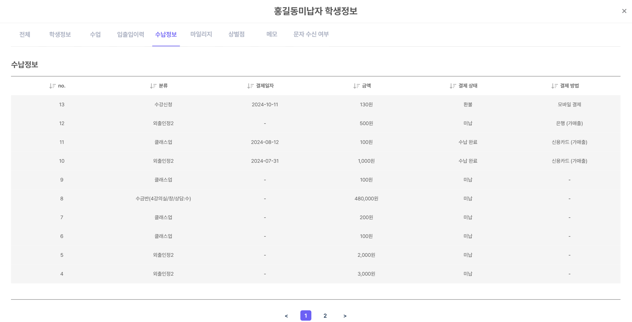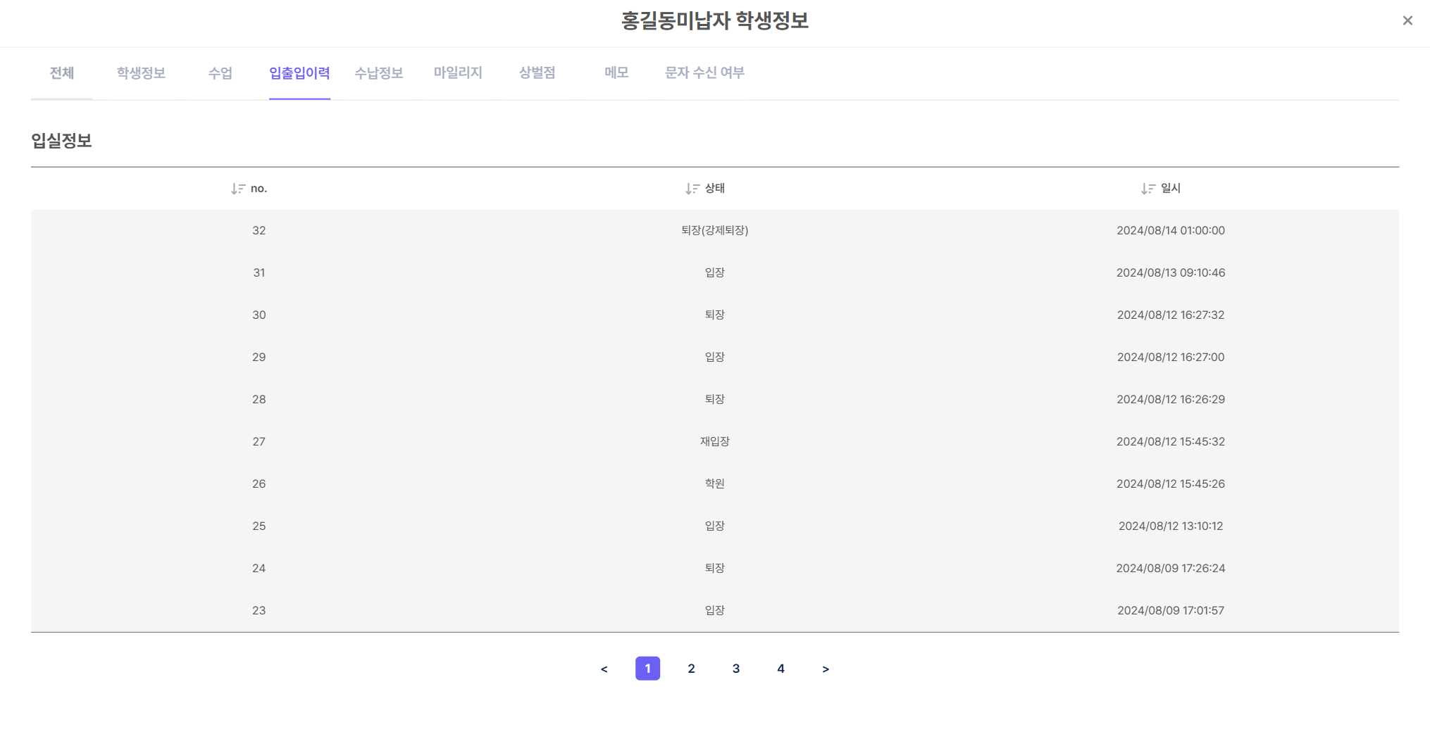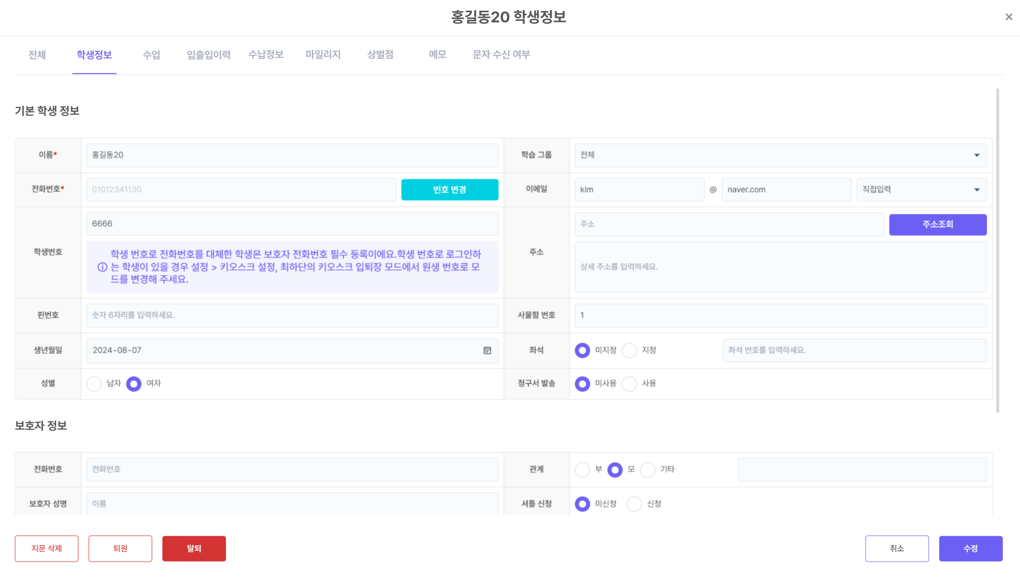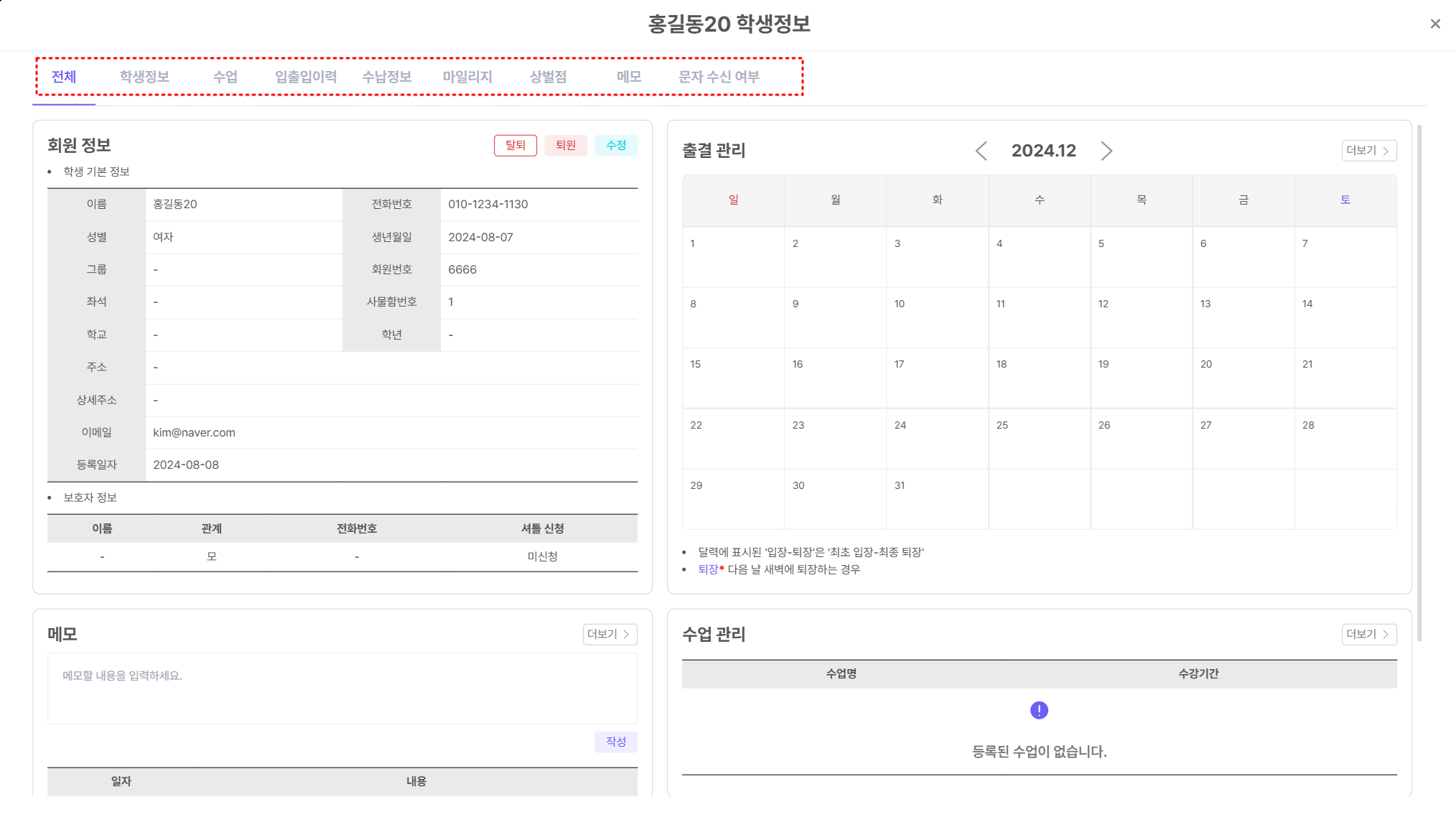 [ํ์] > [ํ์ ๊ด๋ฆฌ]ํ์์ ํด๋ฆญํ๋ฉด ํ์๋ณ ์์ธ ์ ๋ณด๋ฅผ ํ์ธํ ์ ์์ต๋๋ค.
