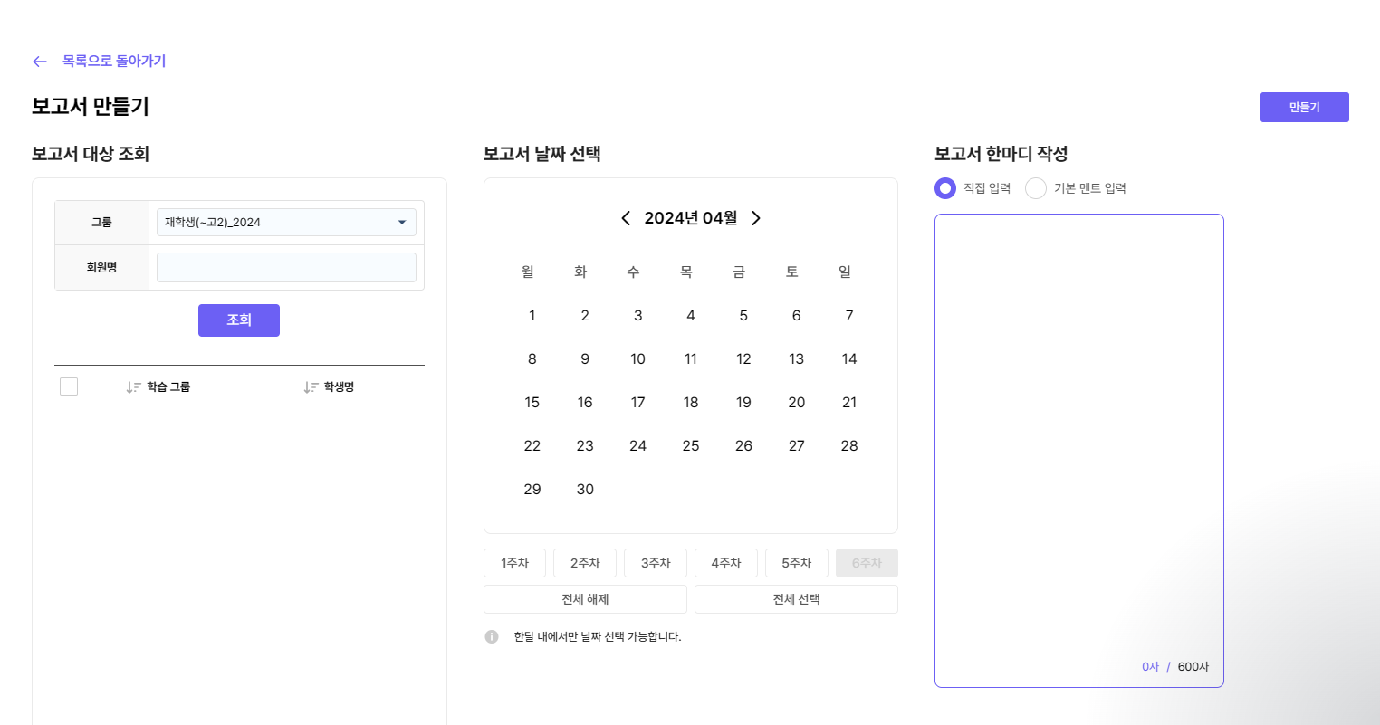보고서 한마디를 입력하고 [만들기]를 클릭해주세요.