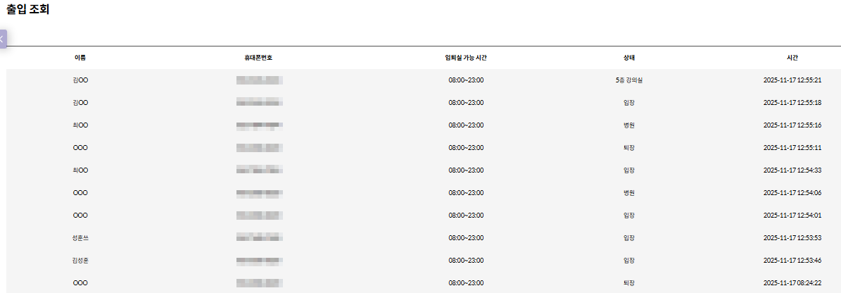[입장/퇴장]: 관리자가 키오스크를 찍지 않은 학생을 수동으로 체크