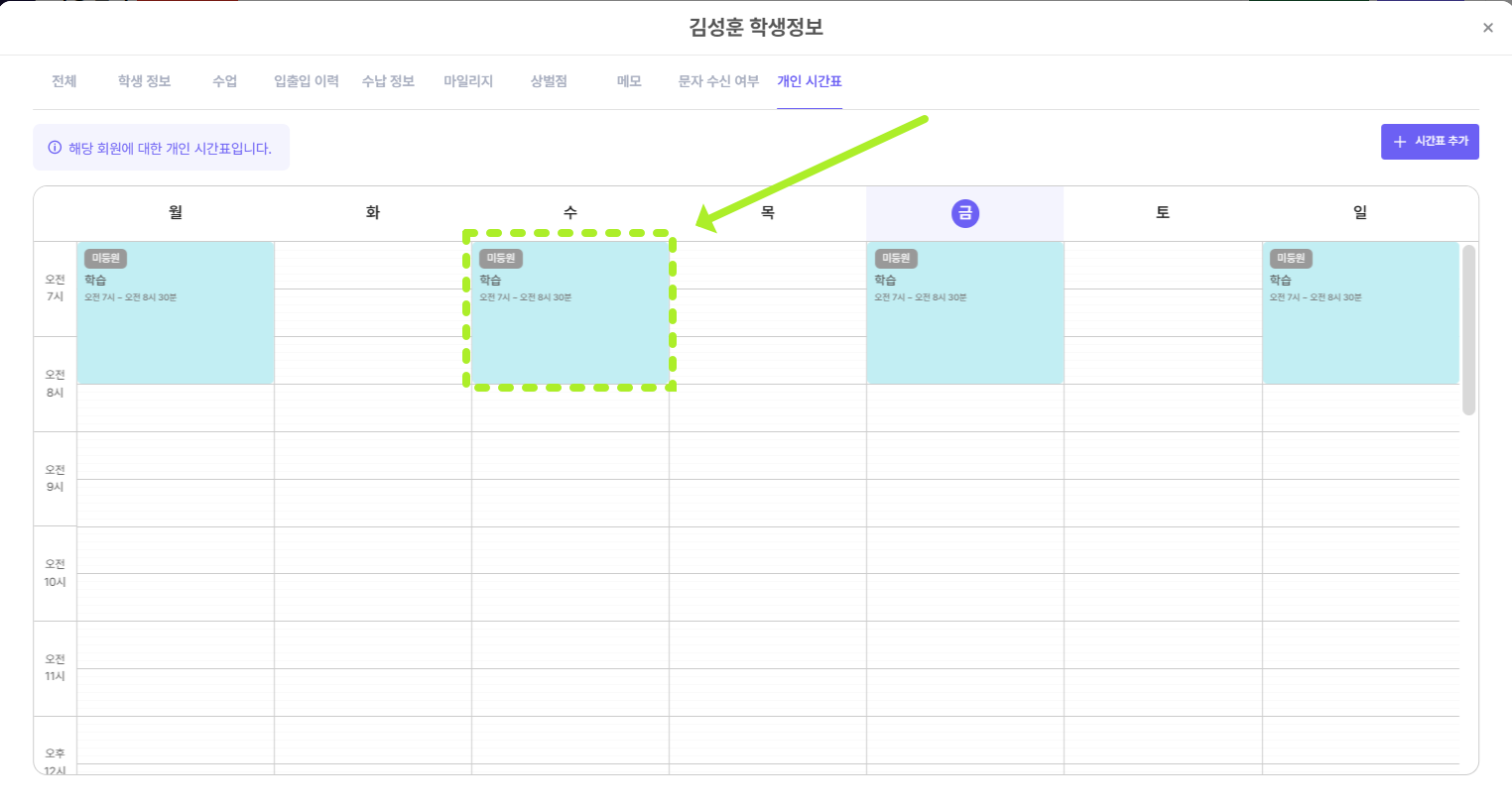 학생 개인 시간표