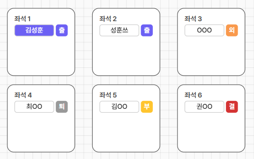 '출석'와 '스케쥴' 상태를 바로 확인하실 수 있어요.