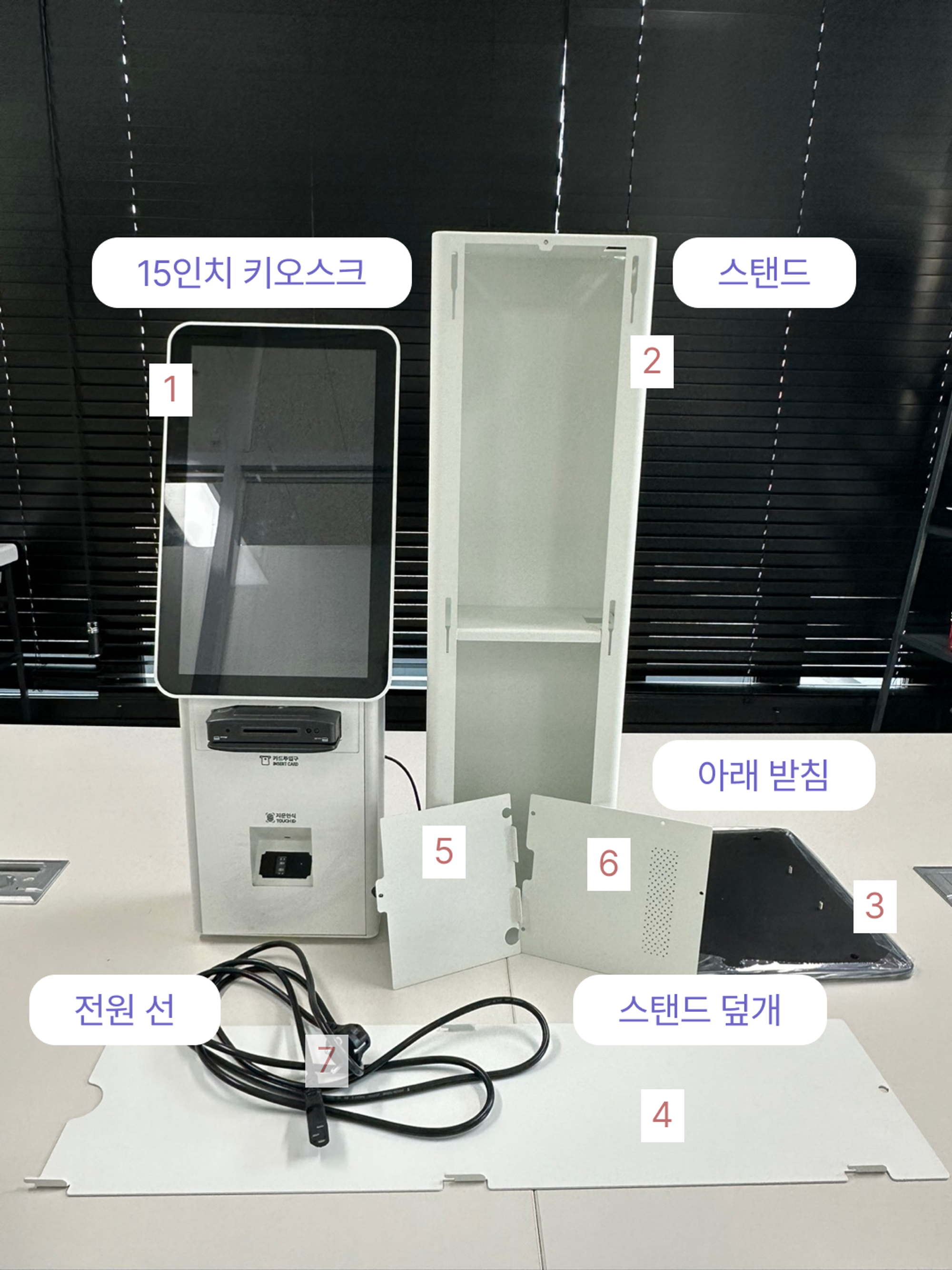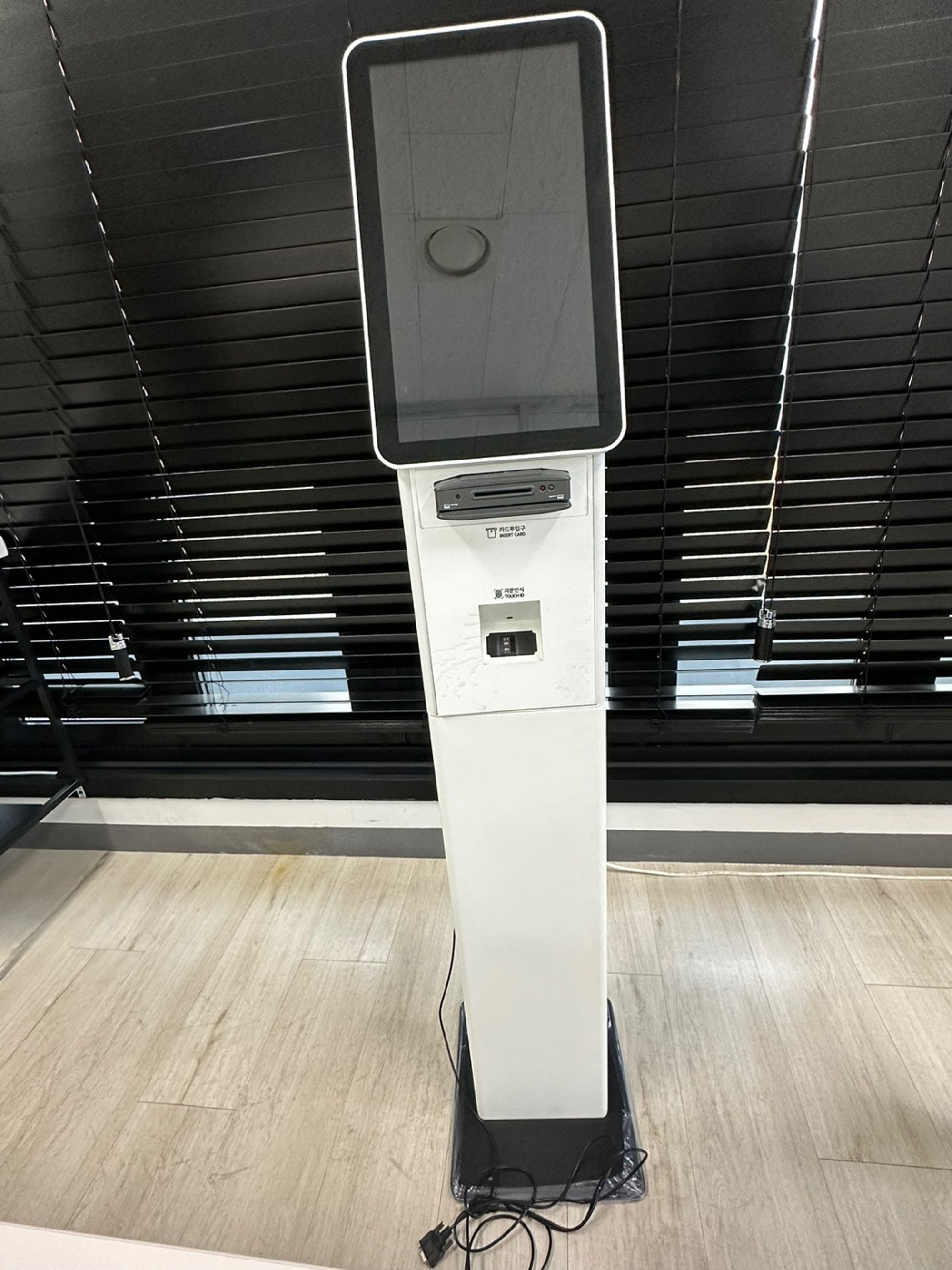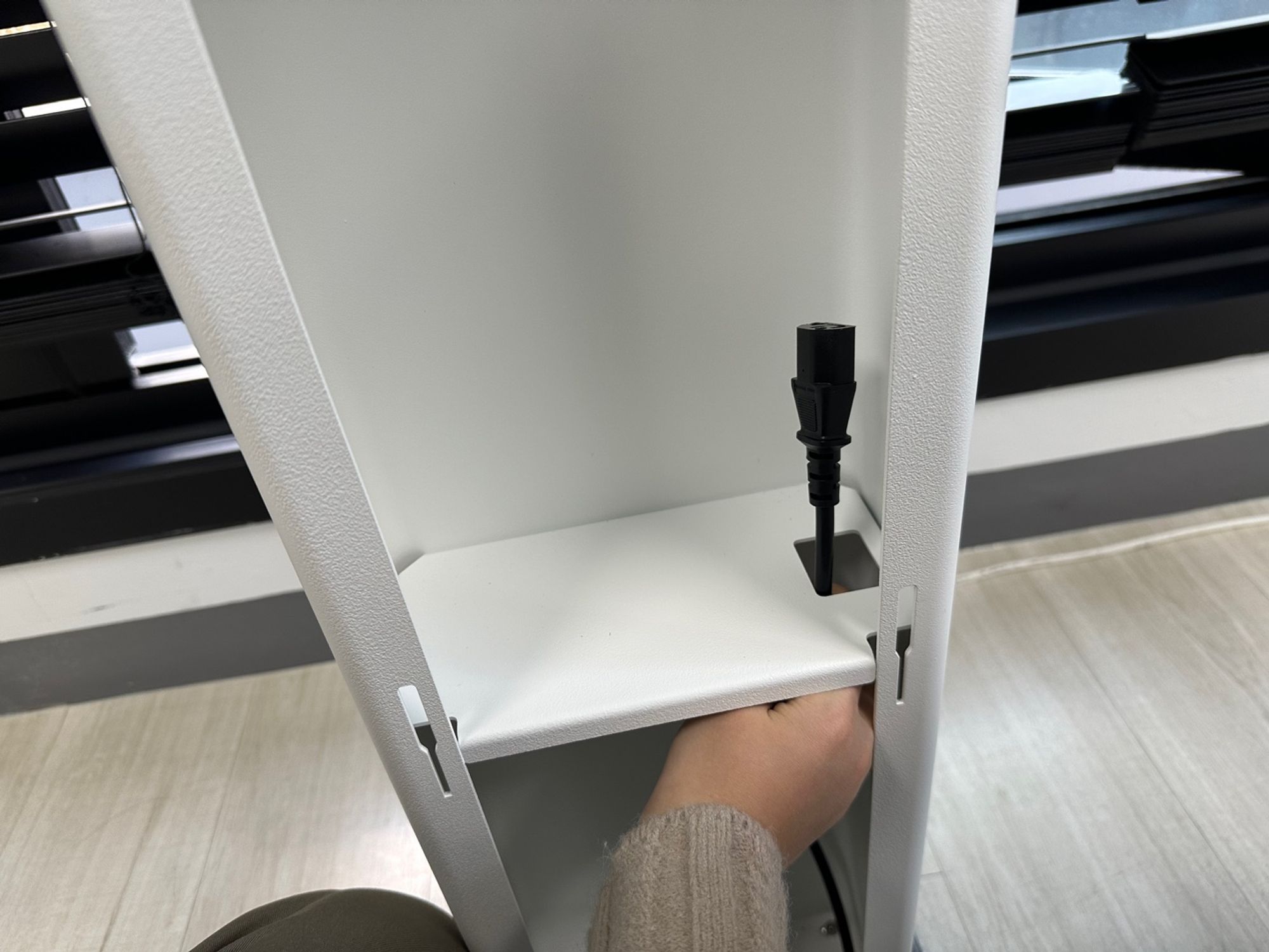 먼저 키오스크 뒷면에 전원 선을 연결해주세요.