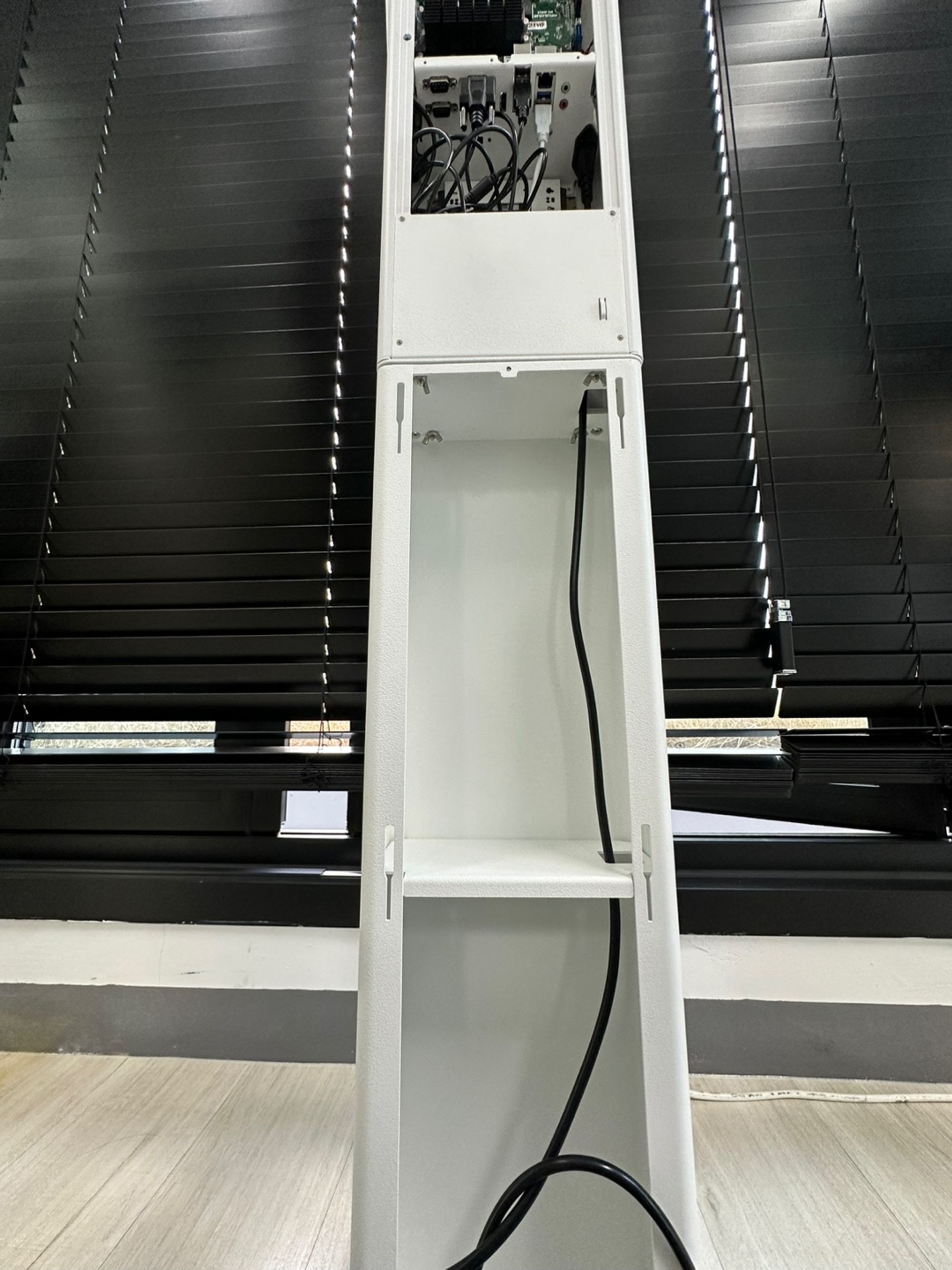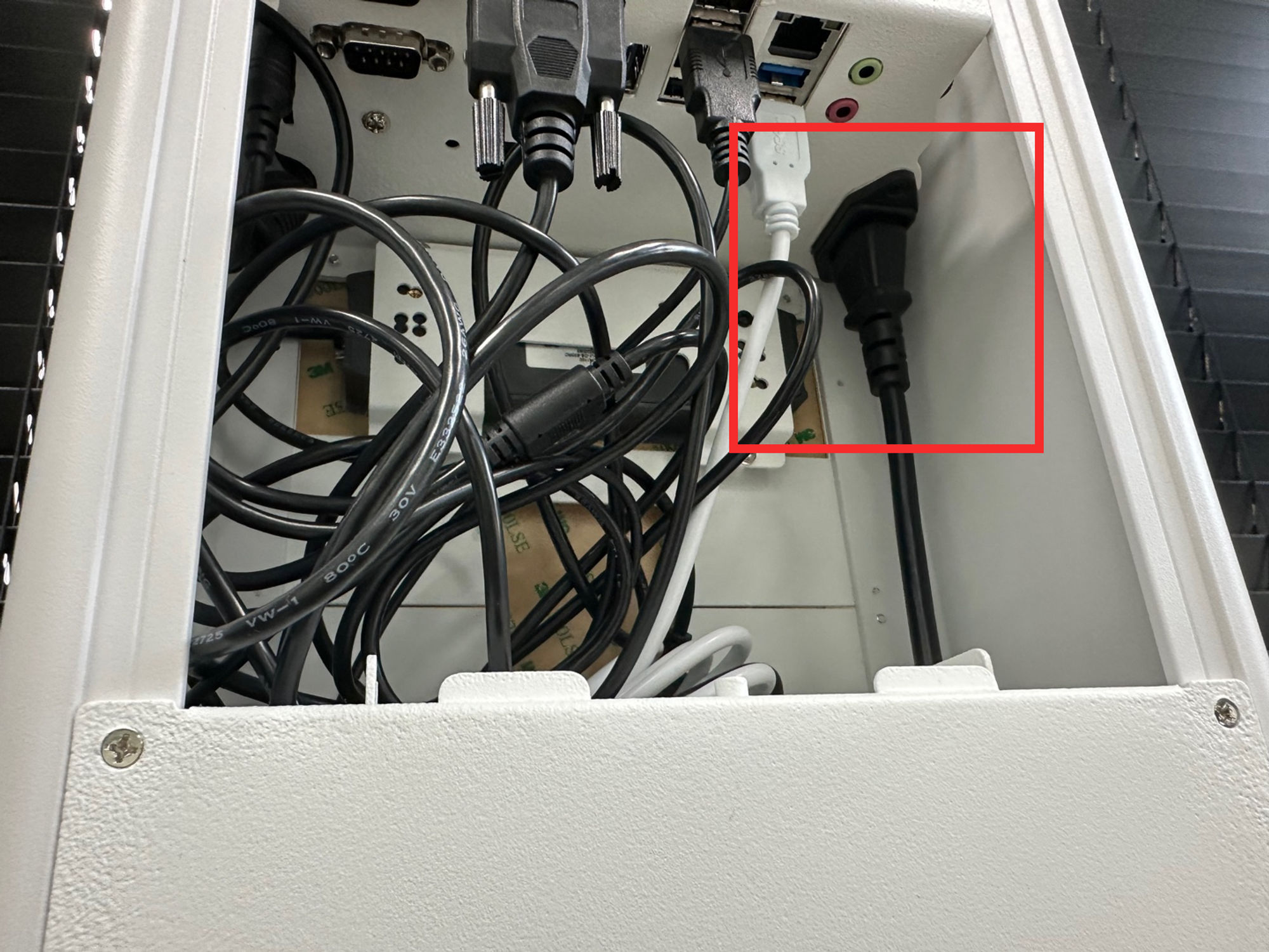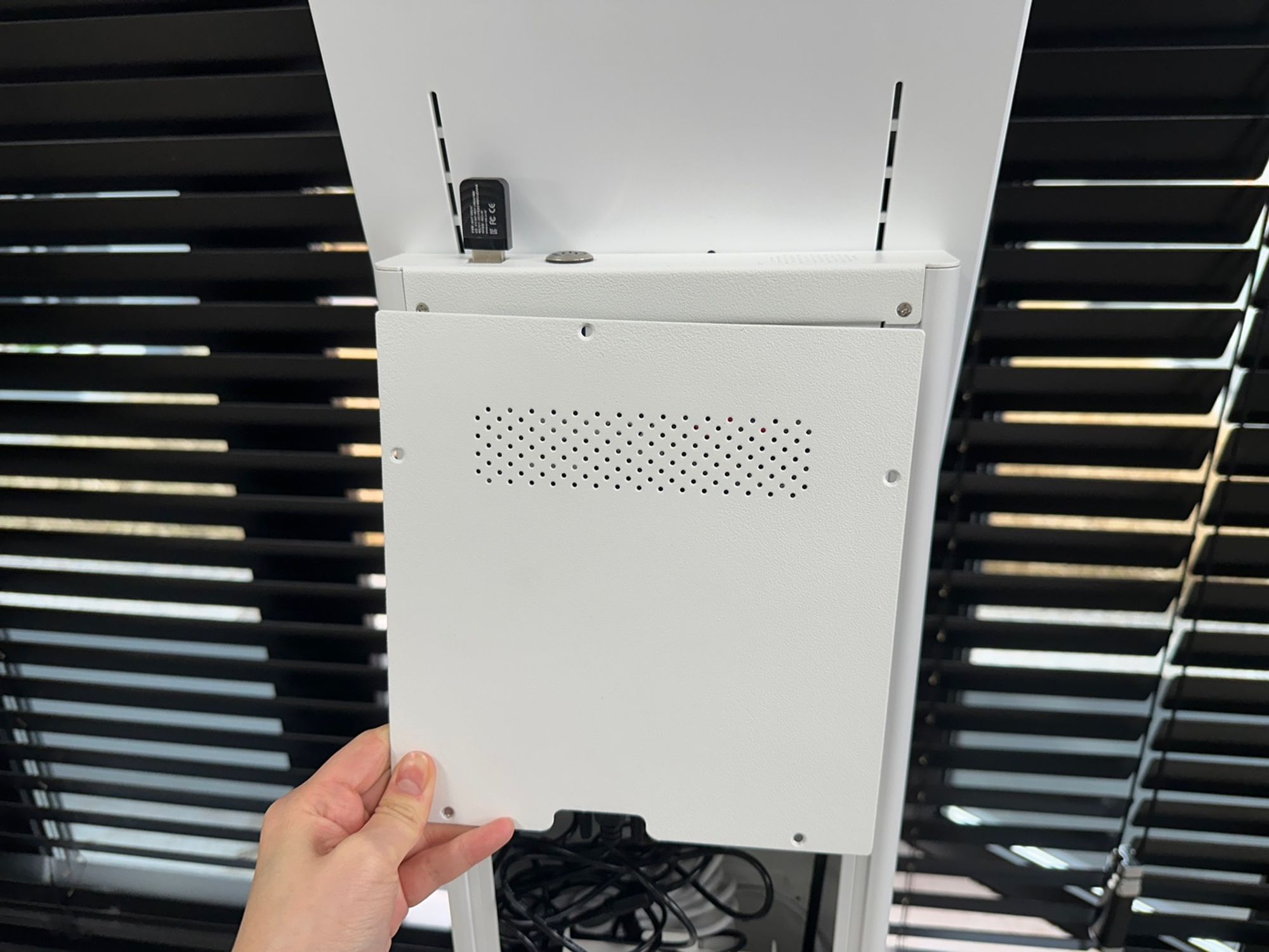 먼저 키오스크 뒷면에 전원 선을 연결해주세요.