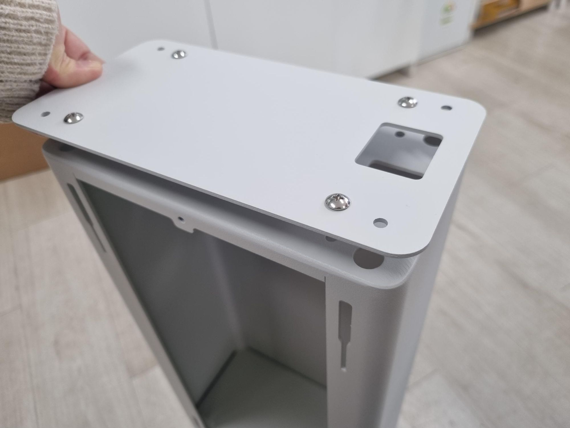 다음으로 키오스크를 스탠드 위에 올려주세요.