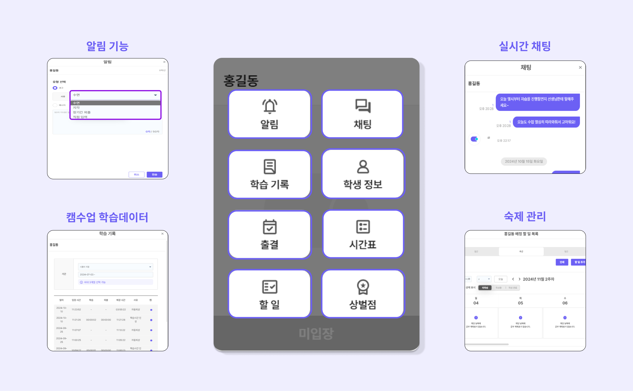 기간별(일간/주간/월간) 학습 데이터 및 상벌점 보고서를 조회 및 발송할 수 있습니다.