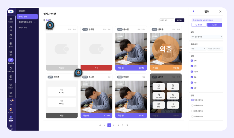 알림. 학습 중인 학생에게 실시간으로 경고 알림을 보낼 수 있습니다.