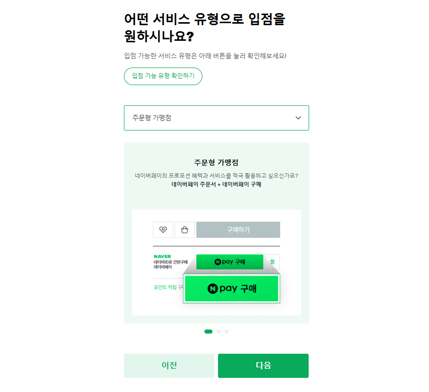 네이버페이 [주문형]은 운영중인 쇼핑몰의 상품 상세 페이지에서 네이버페이 구매 버튼으로 바로 구매할 수 있는 방식입니다.