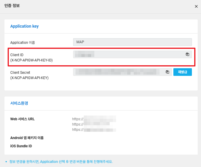 • 이제 콘솔 > Maps > Application 메뉴에서 Client ID 정보를 확인할 수 있습니다.