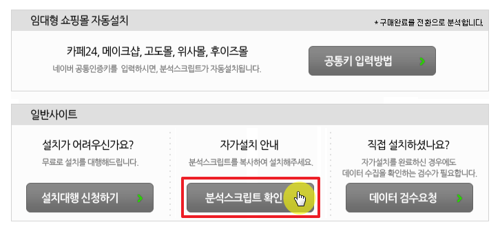 메일이 확인되었다면 분석스크립트 확인 버튼을 클릭해 기재되어있는 네이버 공통 인증키를 복사해 주세요.