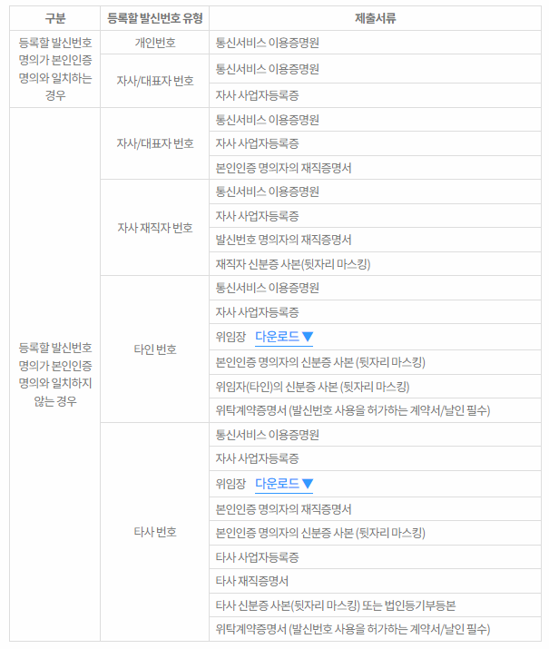( 필수 포함사항 : 발신번호로 등록할 전화번호, 수탁인/위탁인 명시, 수탁인/위탁인 날인)