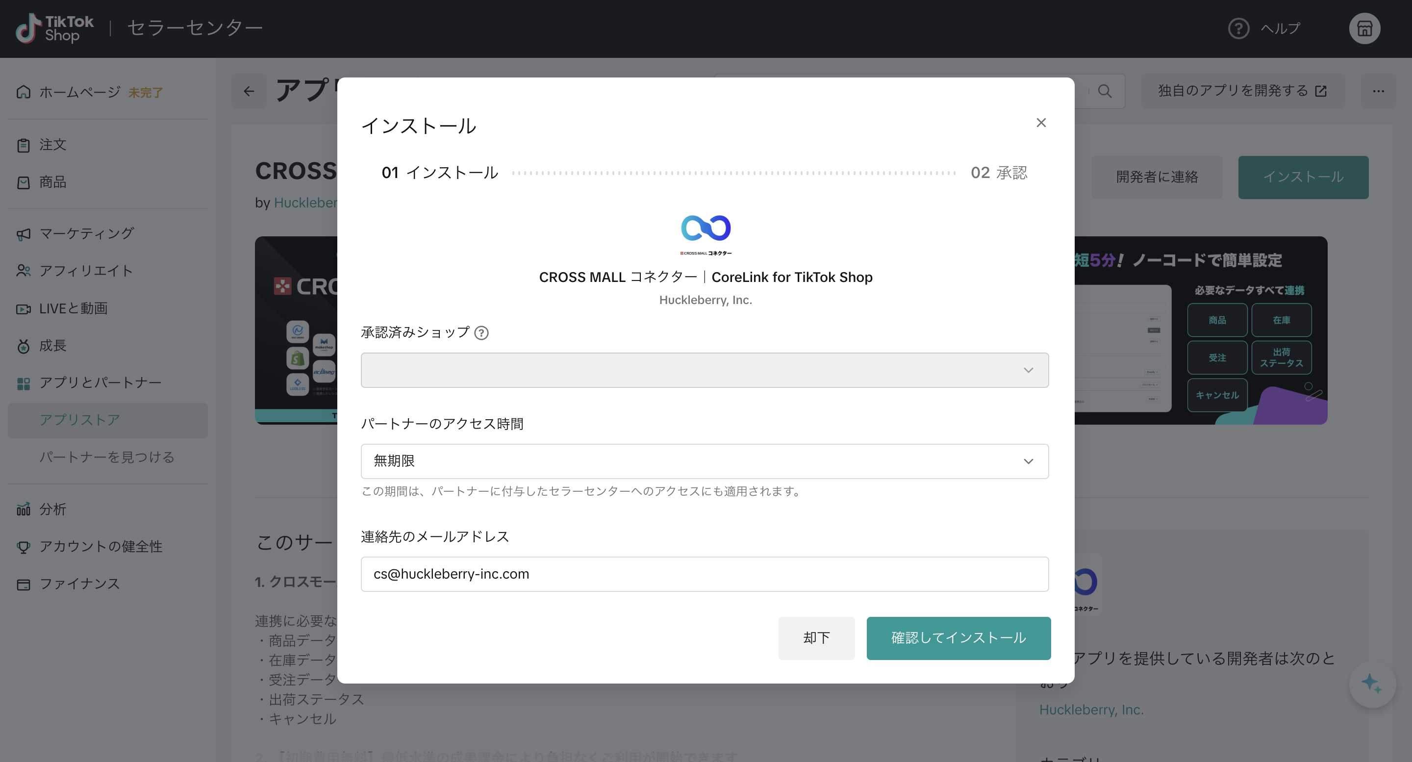 CROSS MALL コネクター|CoreLink for TikTok Shopをインストール