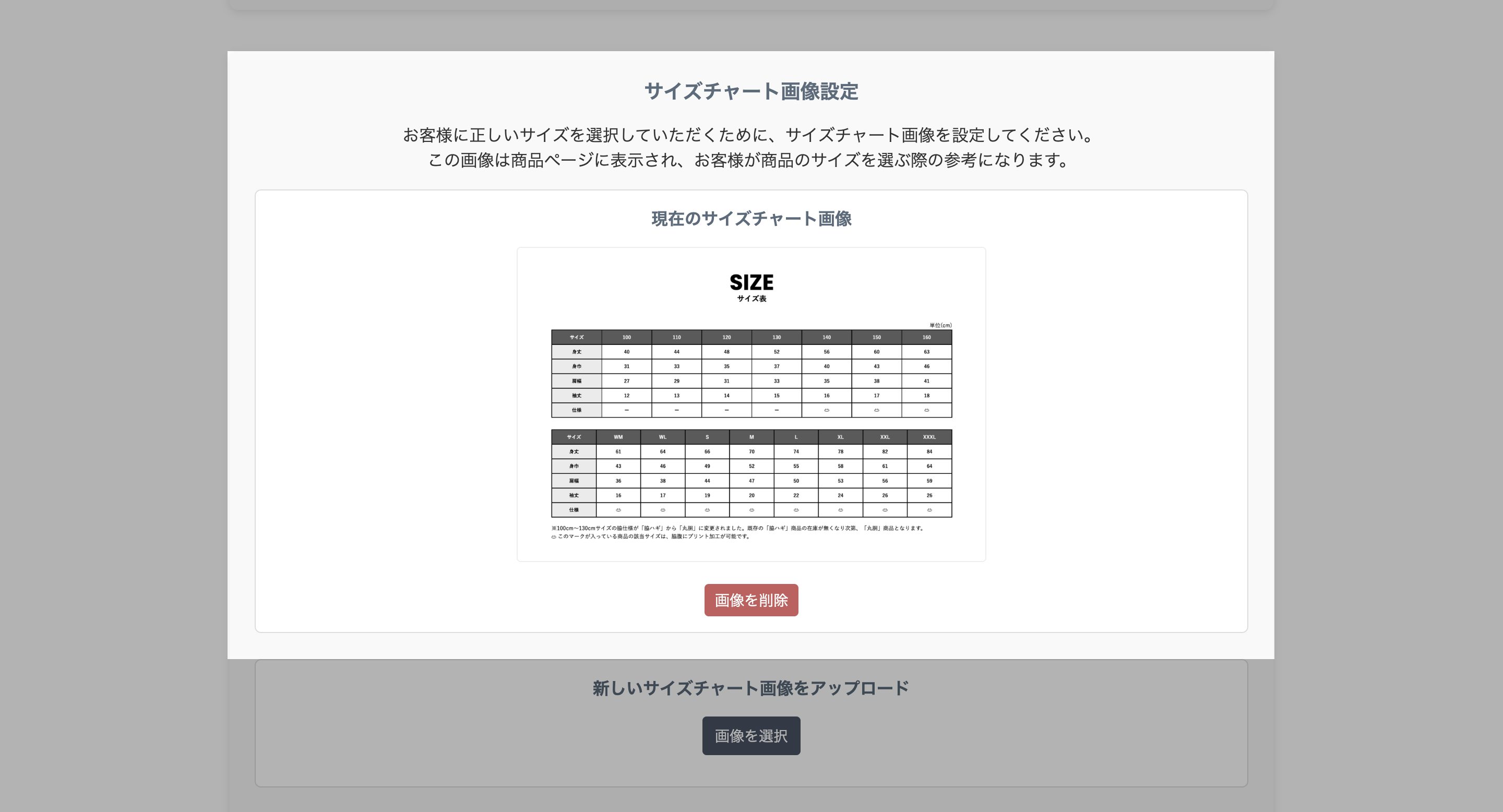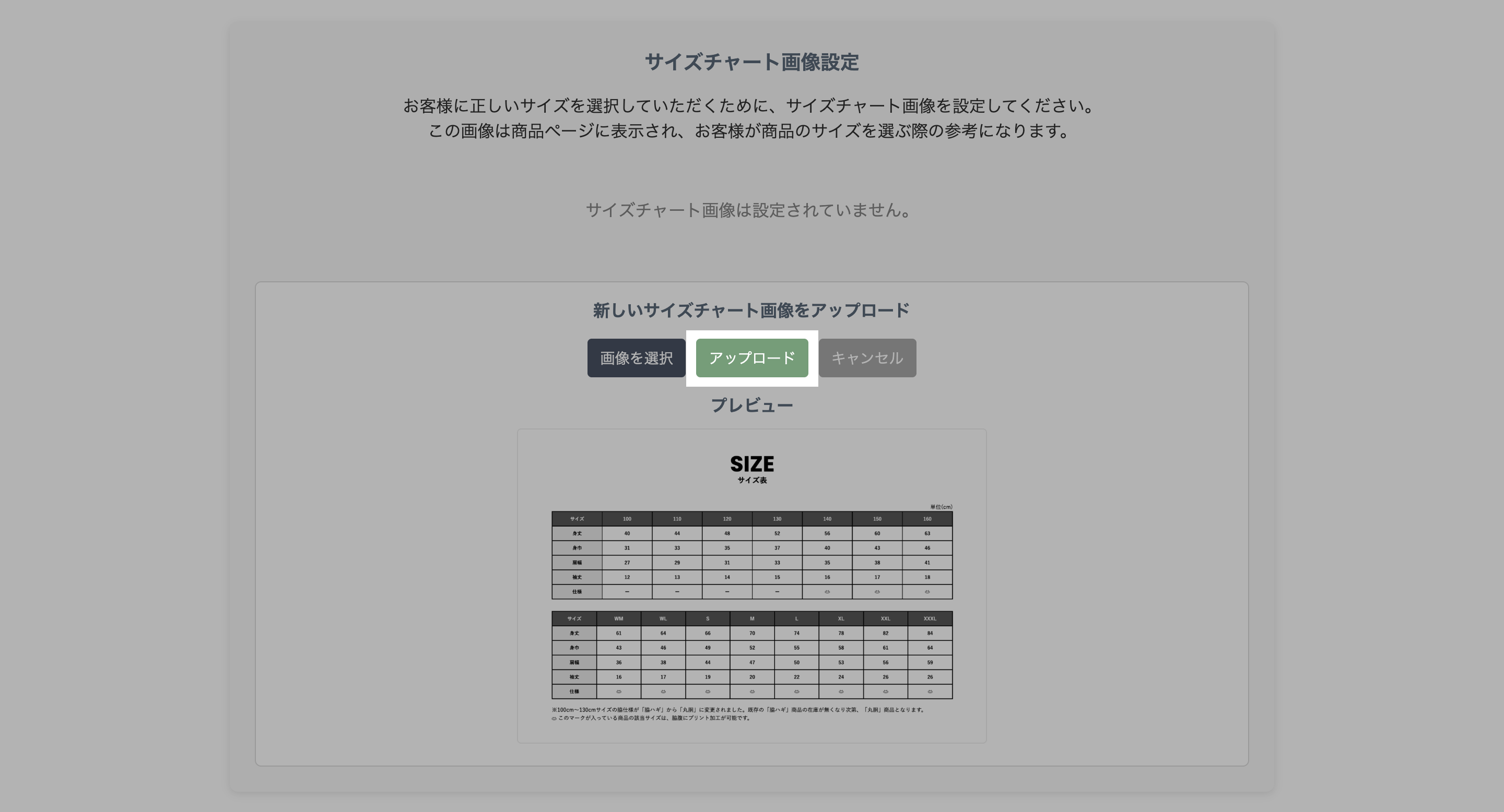 サイズチャート画像設定にて、画像を選択 をクリックし、設定する画像を選択