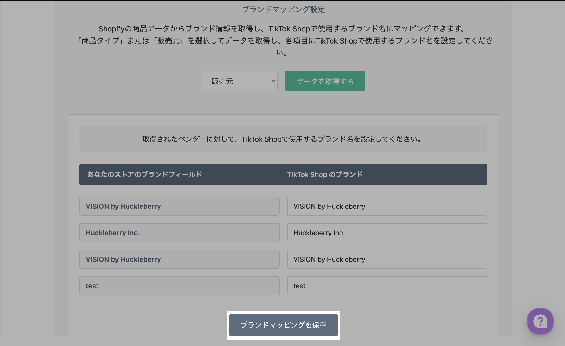 必要に応じてブランド名を編集し、ブランドマッピングを保存をクリック