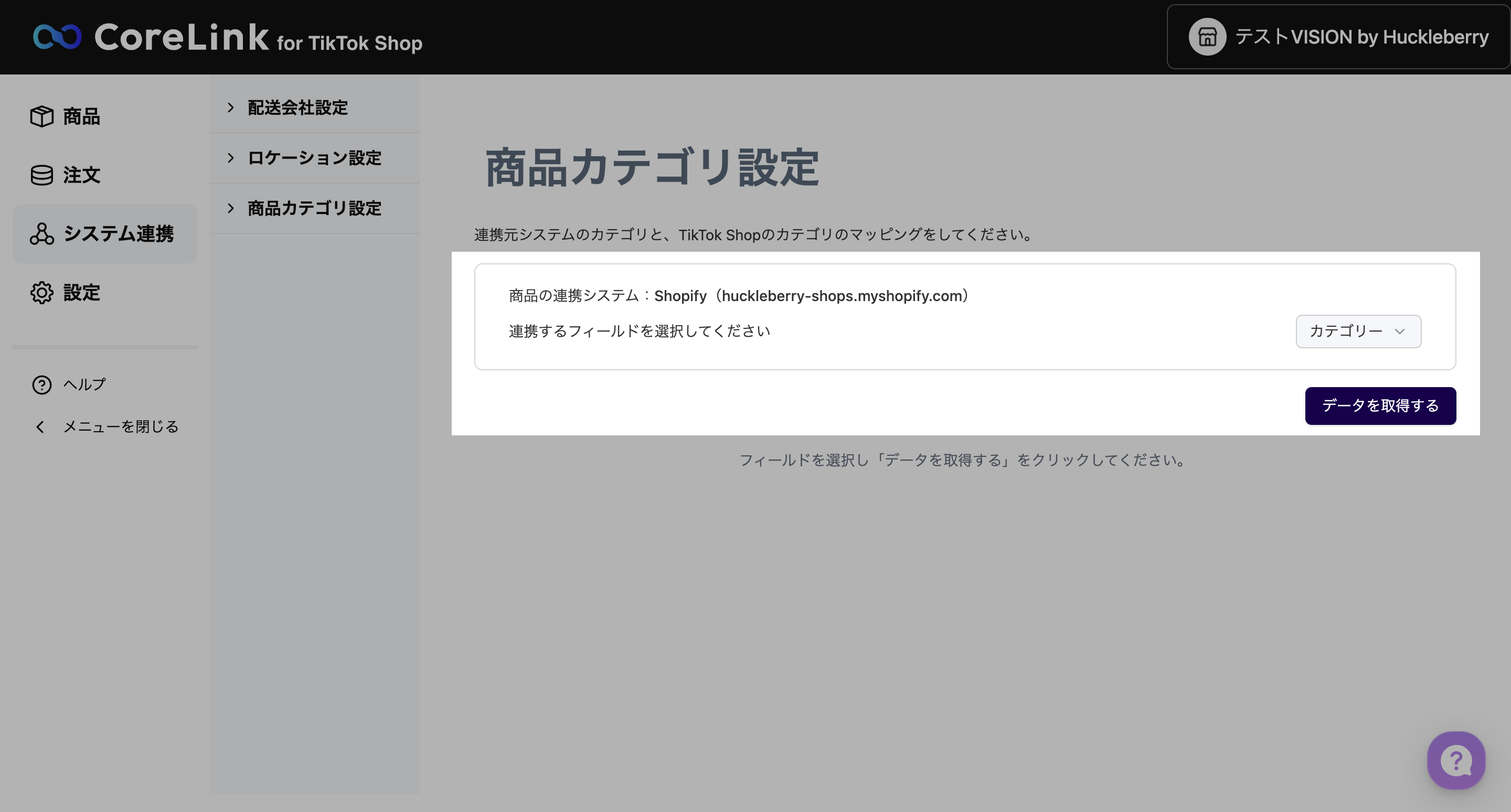 連携元システムのカテゴリと、TikTok Shopのカテゴリをマッピングする機能です。