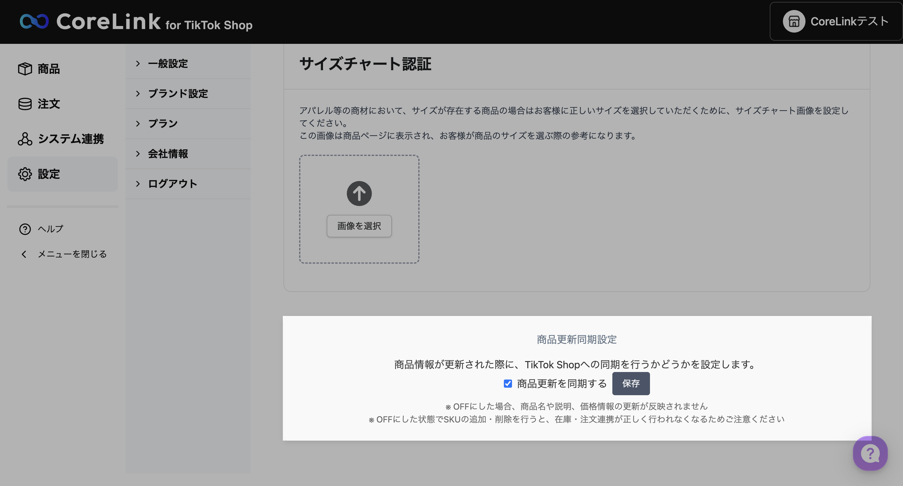 「商品更新を同期する」のON/OFFを選択し、