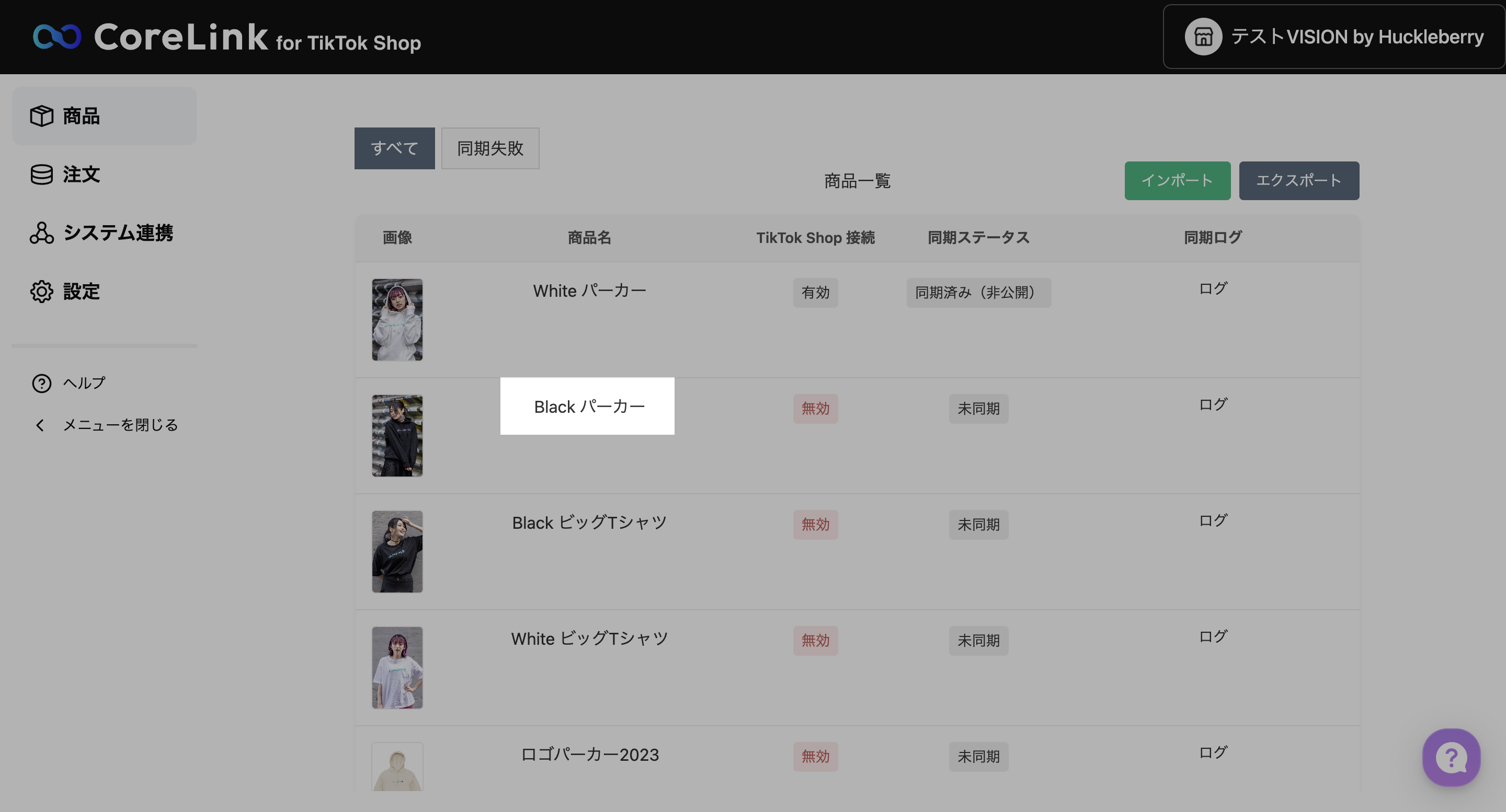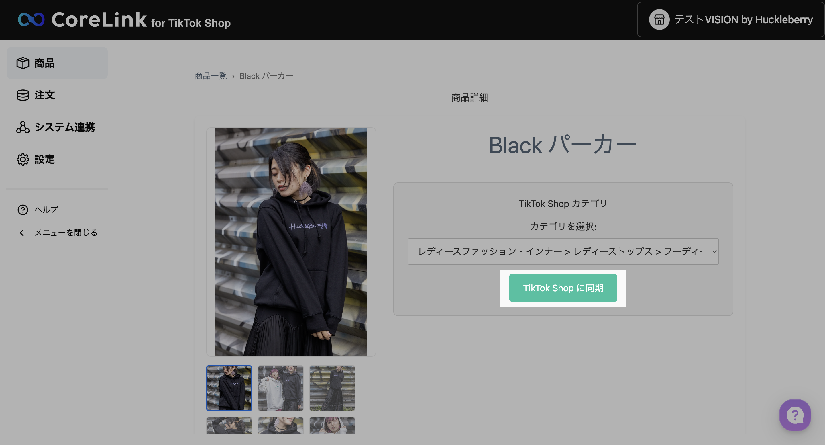下記手順にてご対応ください。下記URLにアクセスhttps://tiktok-shop-app.core-link.jp/products該当商品の商品名をクリック手動でカテゴリを選択し、TikTok Shop に同期 をクリック