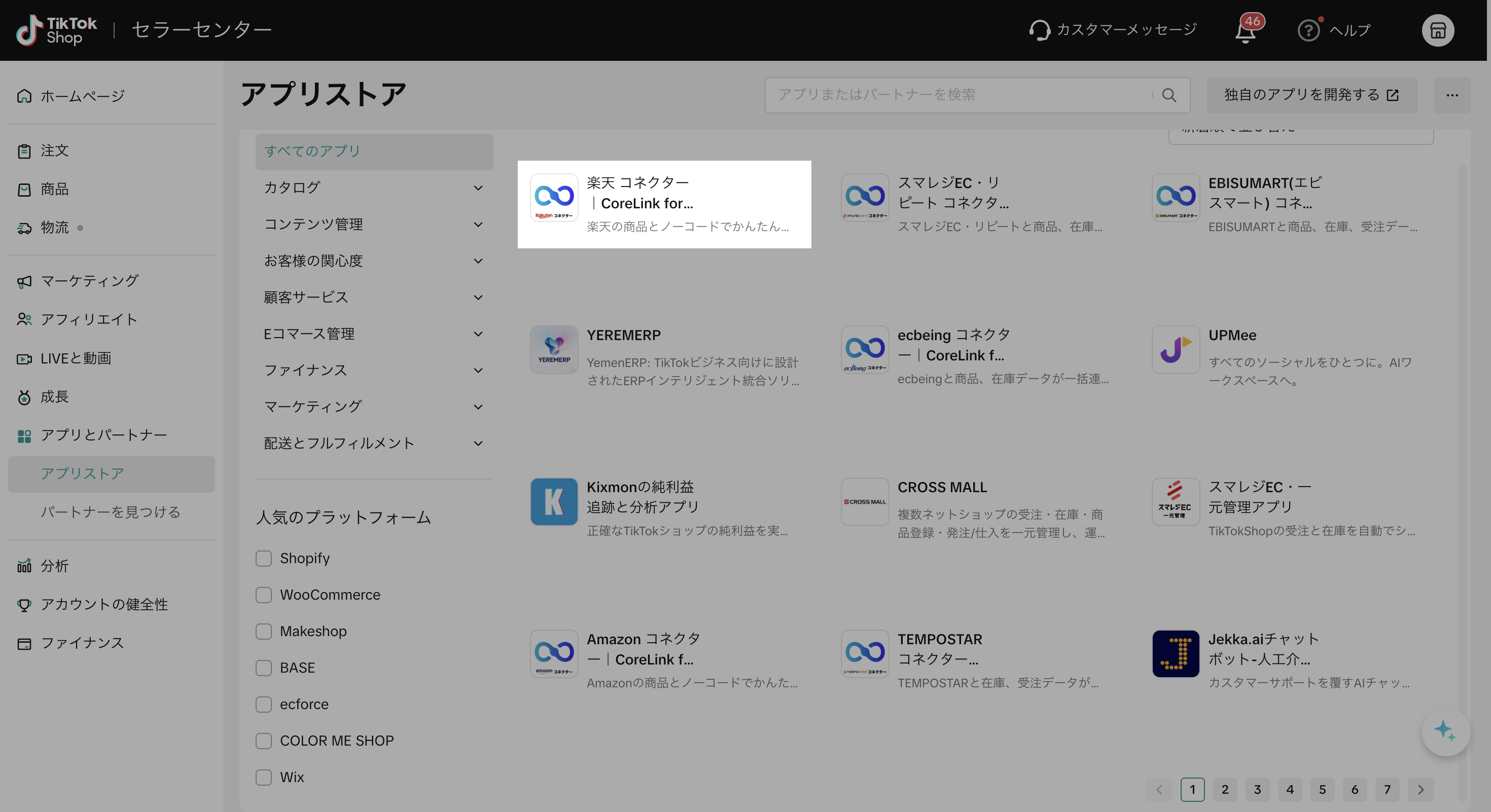 TikTok Shop セラーセンター「アプリストア」にて、