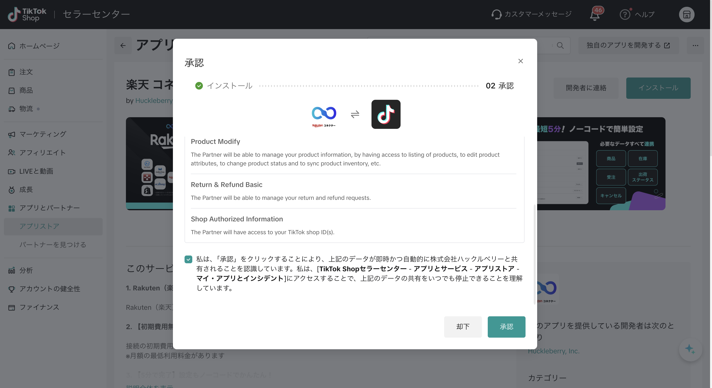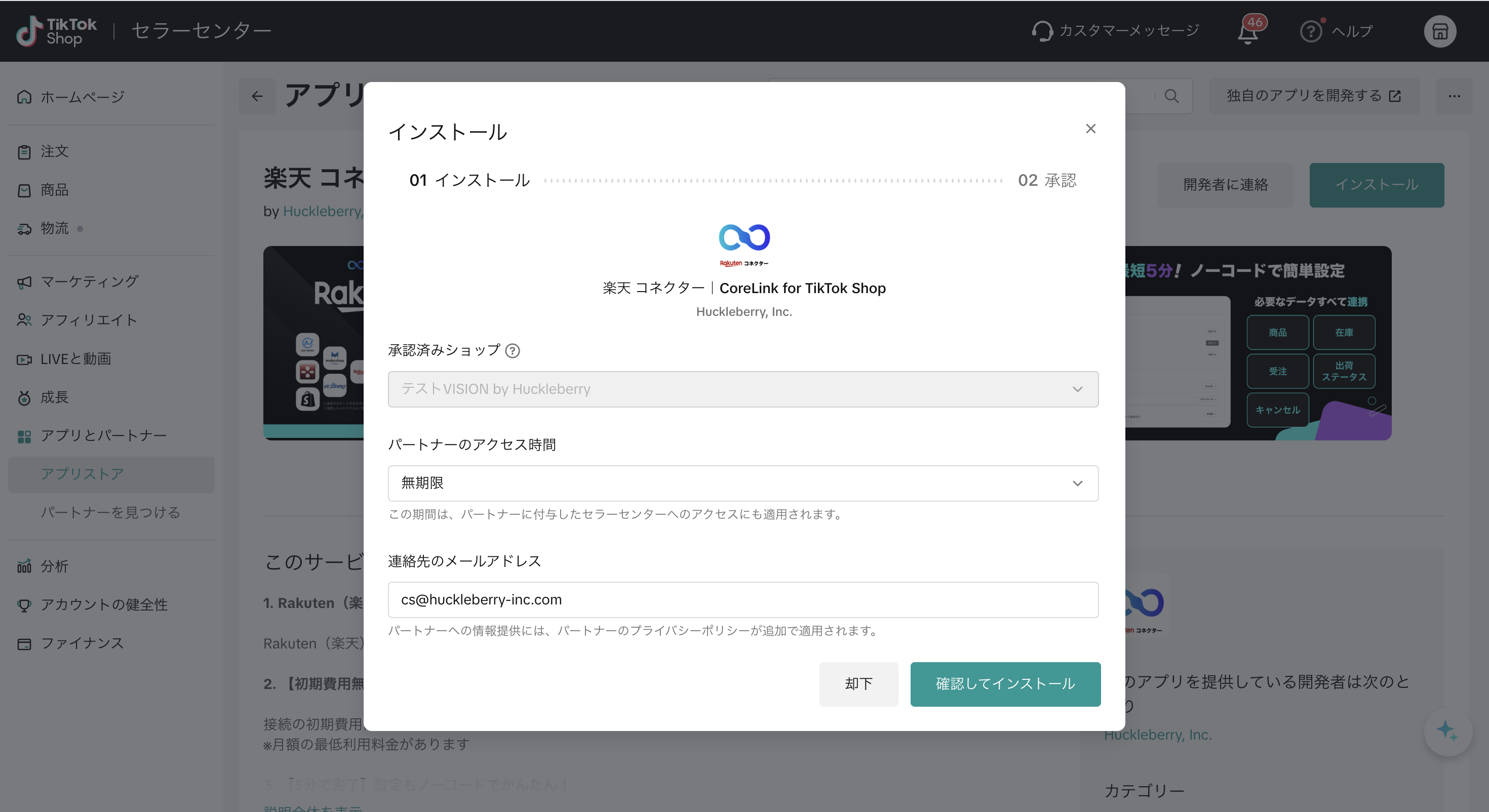 楽天 コネクター|CoreLink for TikTok Shopをインストール