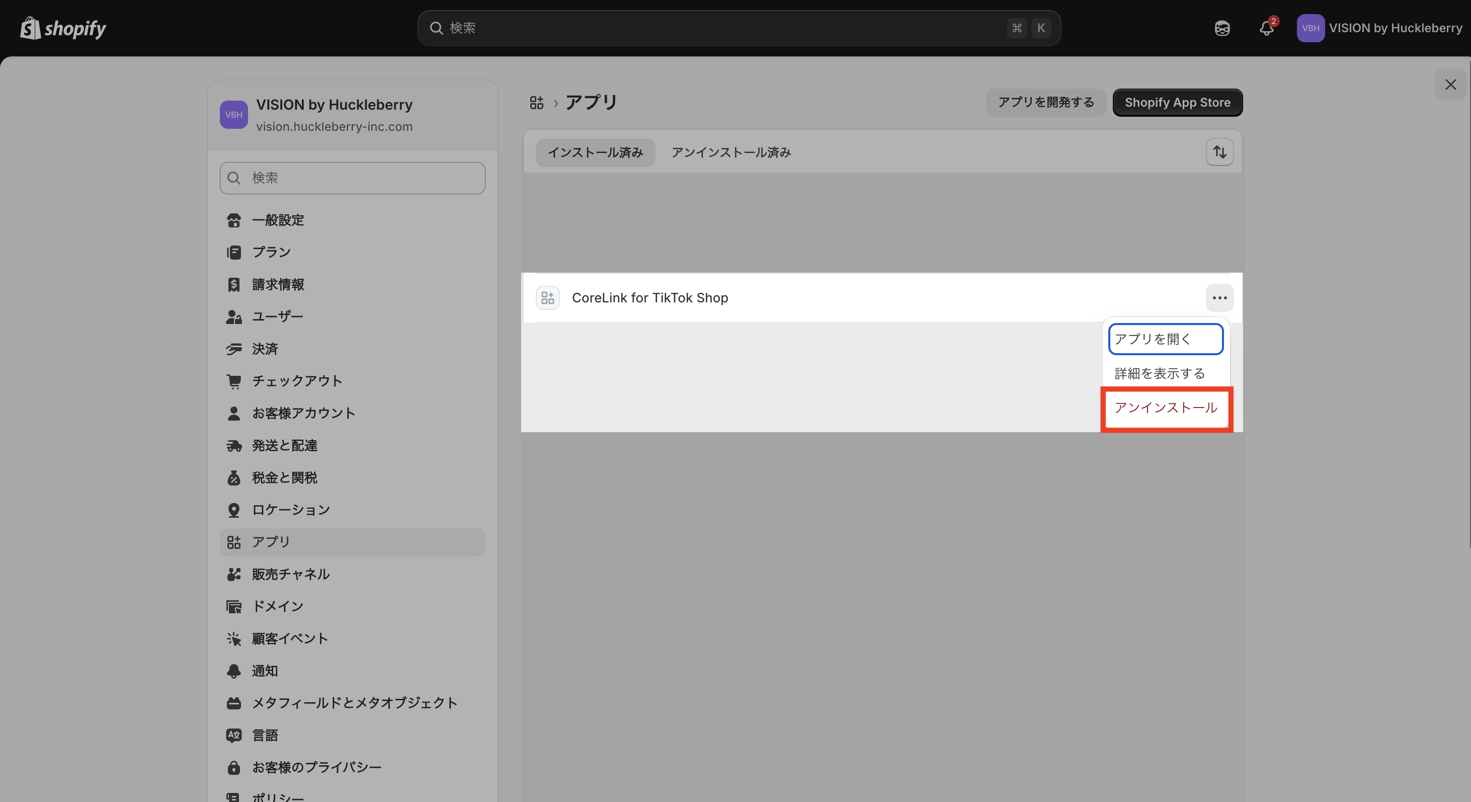 CoreLinkアプリの操作パネル内の「・・・(三点マーク)」をクリックし、「キャンセル」を選択