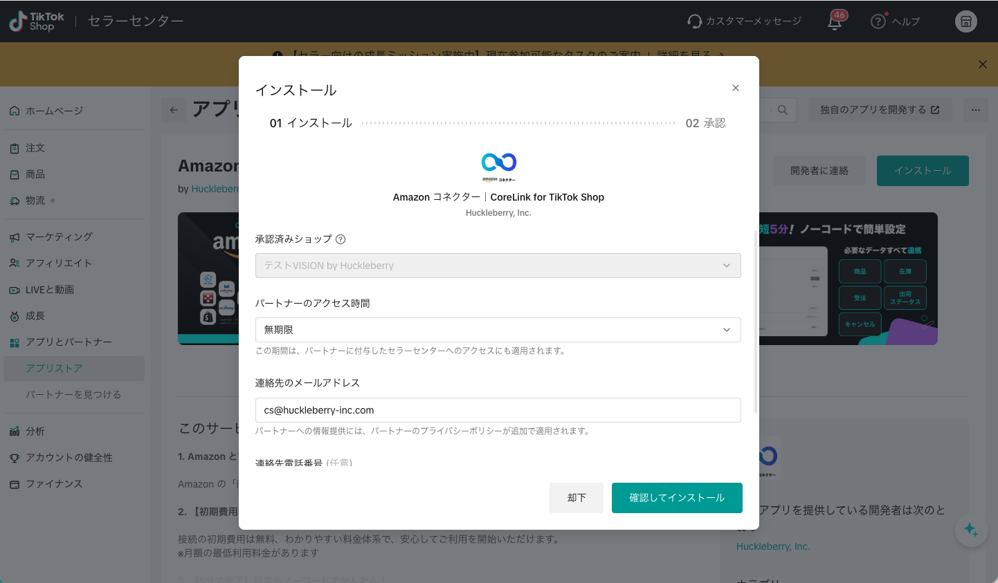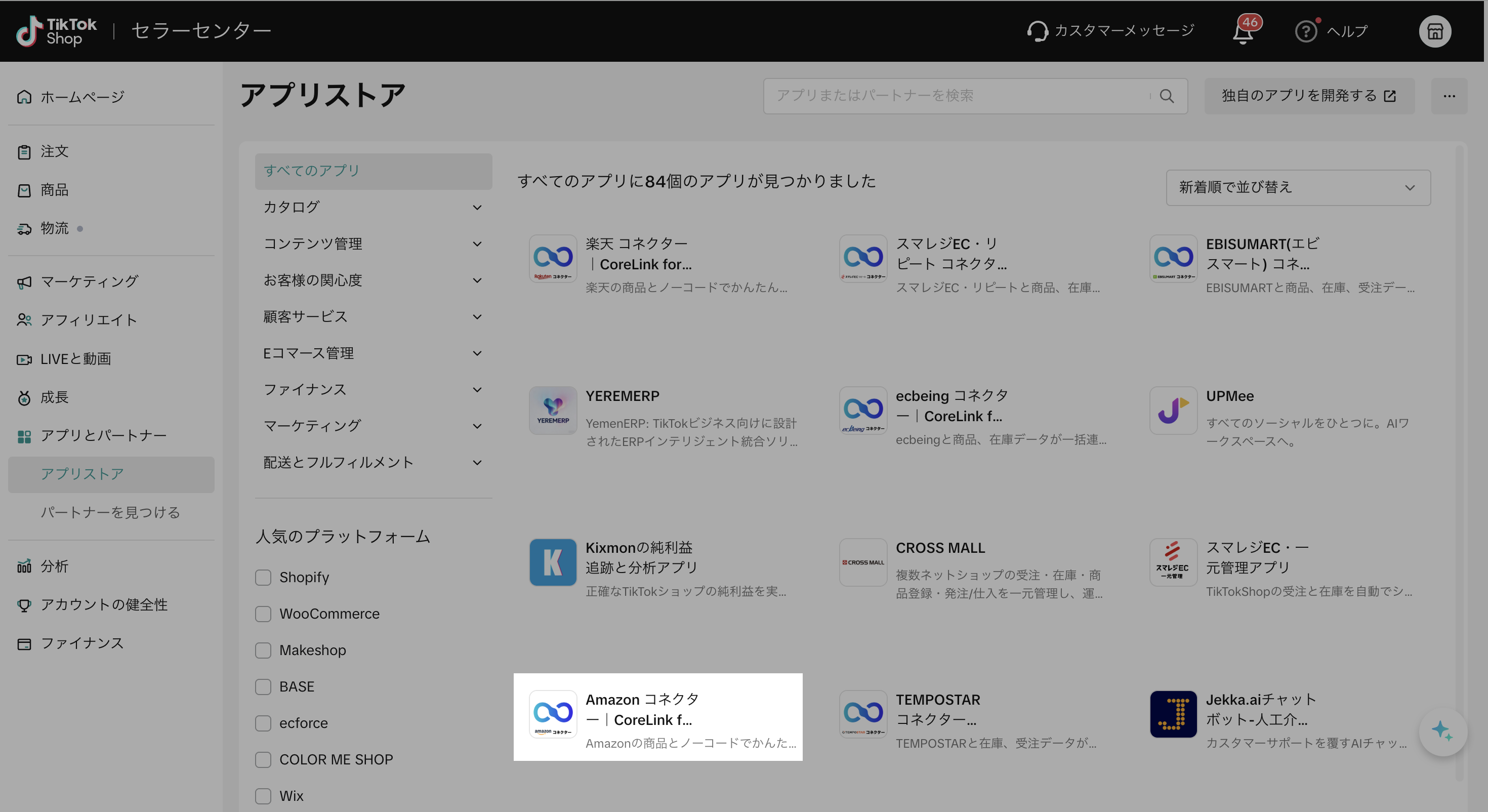 Amazon コネクター|CoreLink for TikTok Shopをインストール
